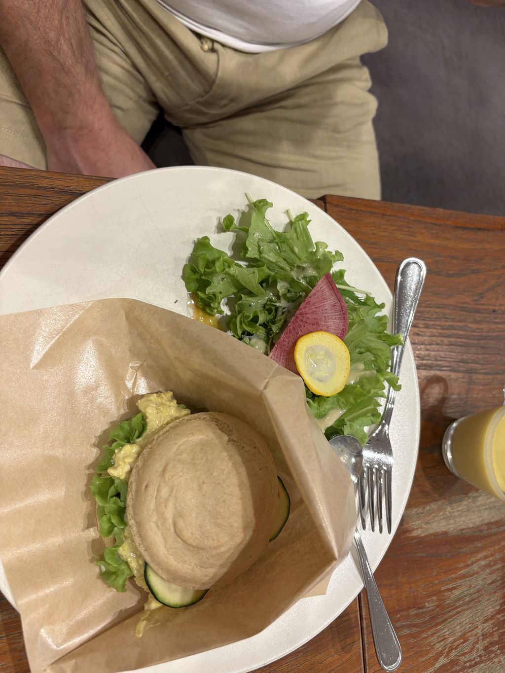 We needed a quick spot to grab breakfast early and they were open. It was so nice and clean inside. It was a huge space! Really nice place to relax and maybe read. We got the tofu egg salad sandwiches and coffee. It was great and what we needed to get the day started.