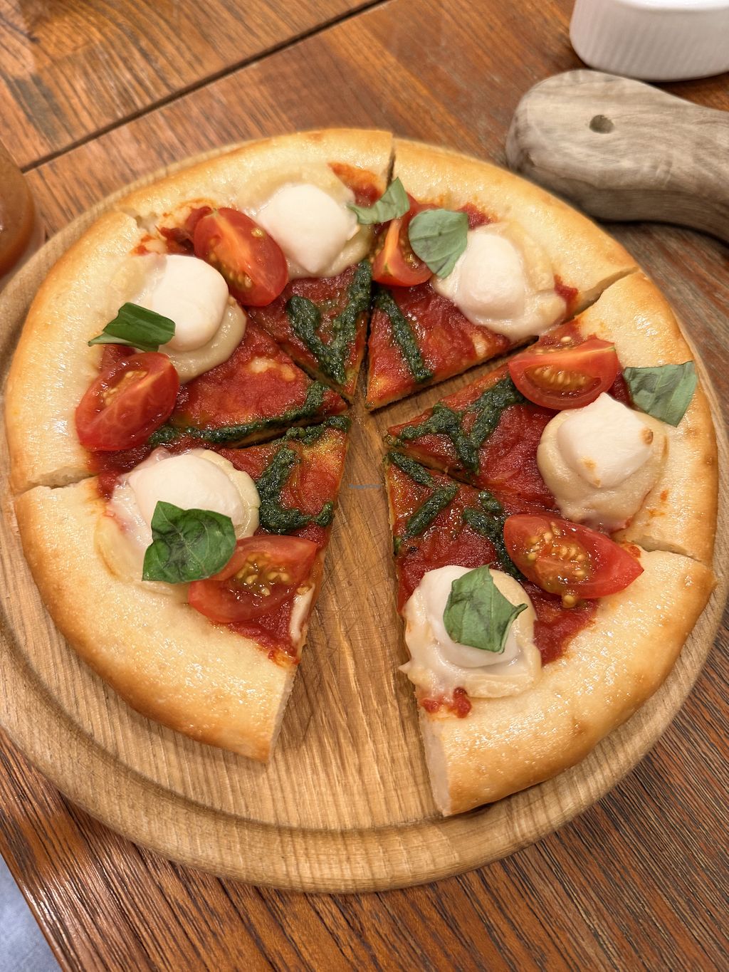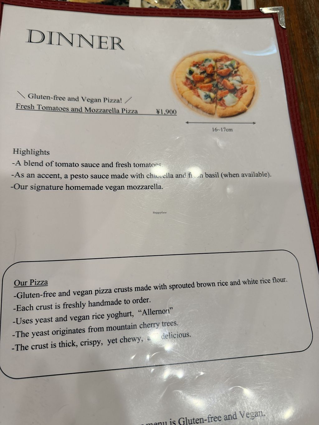 We went there for dinner and loved it. The vegan pizza is a little bit smaller but you can read it in the menu. Tastes really good, they also had traditional meals.