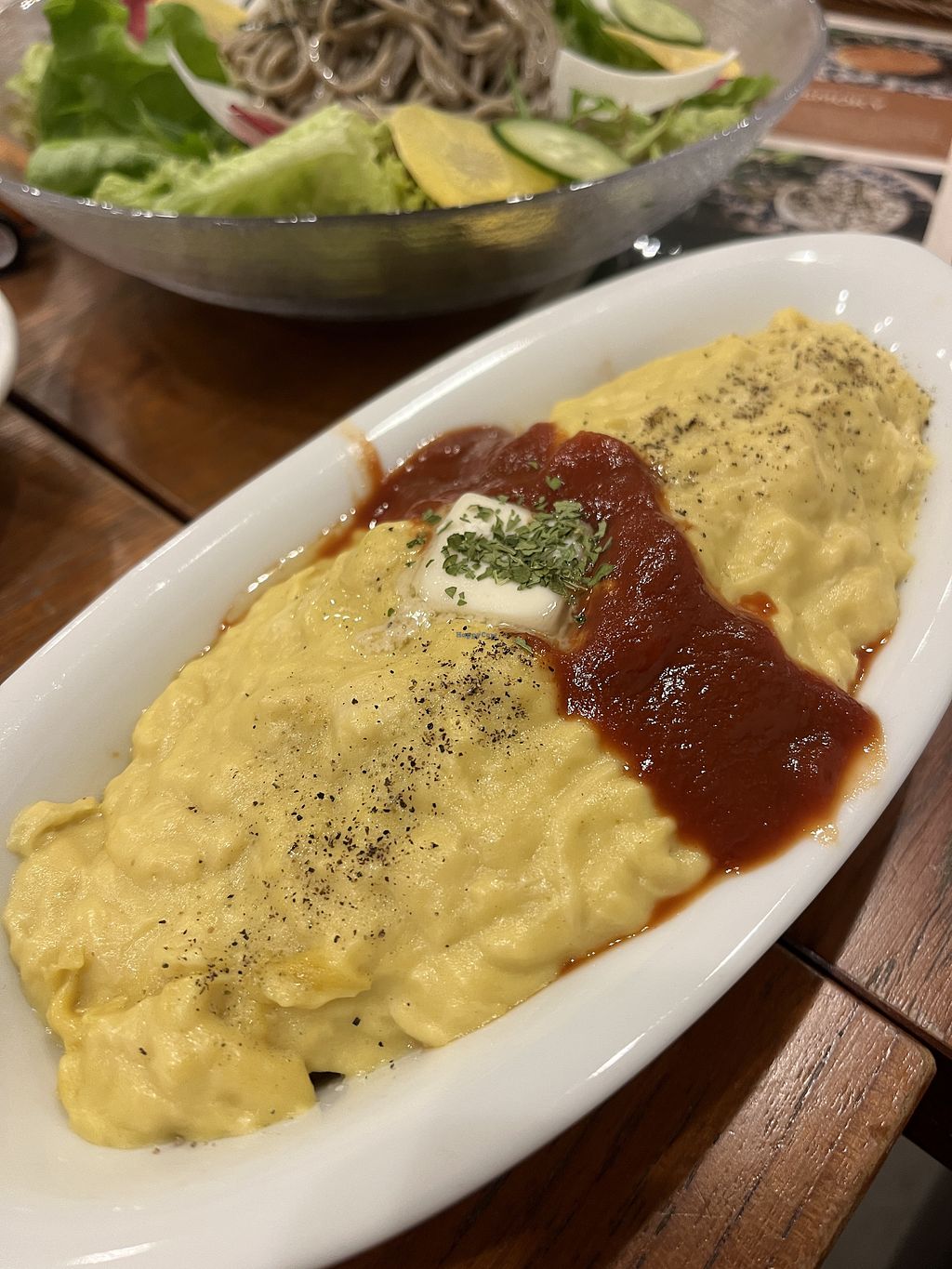 There are certain foods that you miss when you go vegan and Japanese Omu rice (omelette filled with rice and tomato sauce) was one of those. I was really impressed with this take on the comforting Japanese dish. Was so excited I forgot to take a photo.