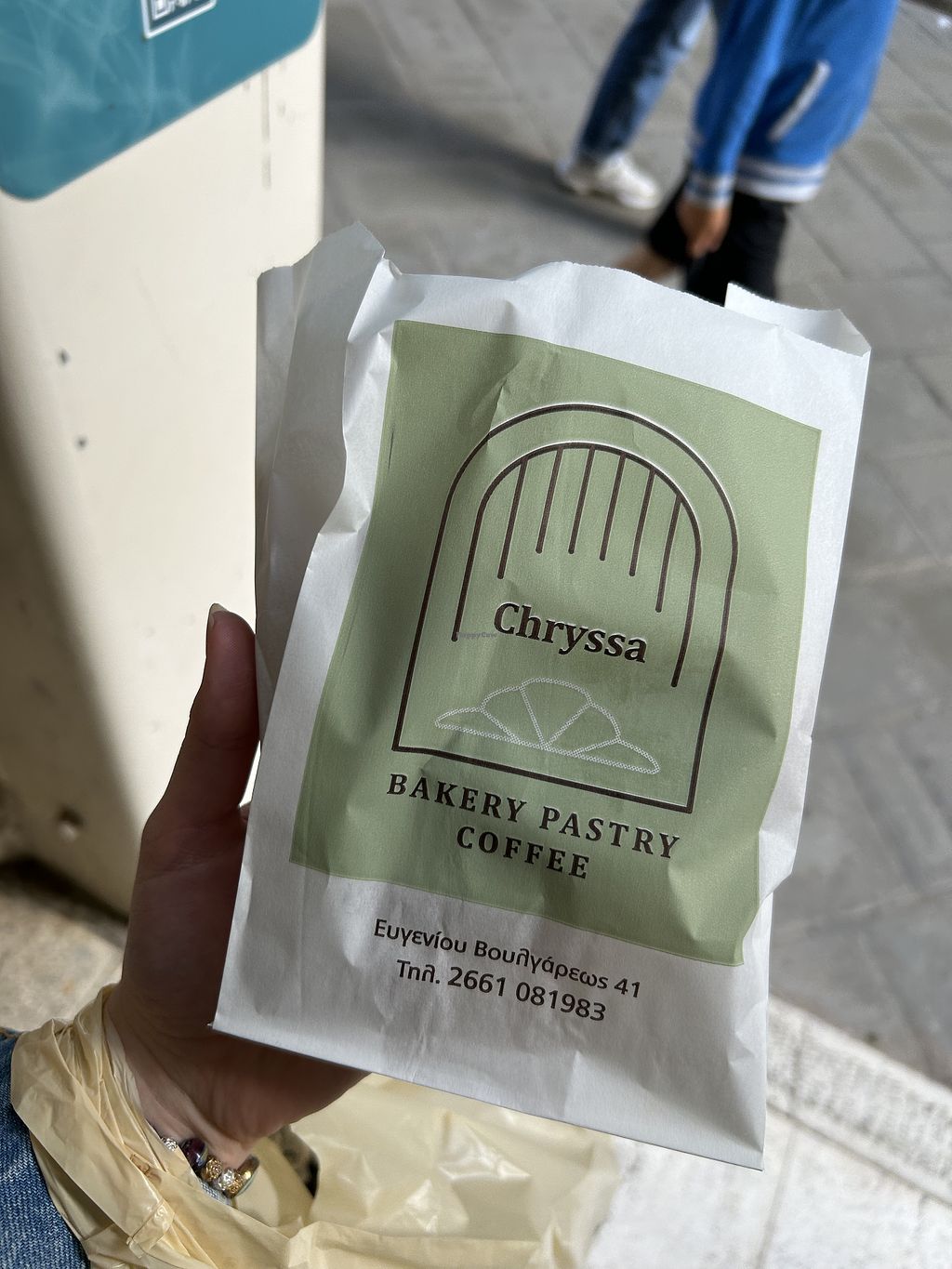 Very nice vegan options, we had the potato pie and tomato and olive bagel. There was also a vegan spinach pie and vegan apple pie. It was 5 euros for both so a decent price and they are open 24 hours as well.