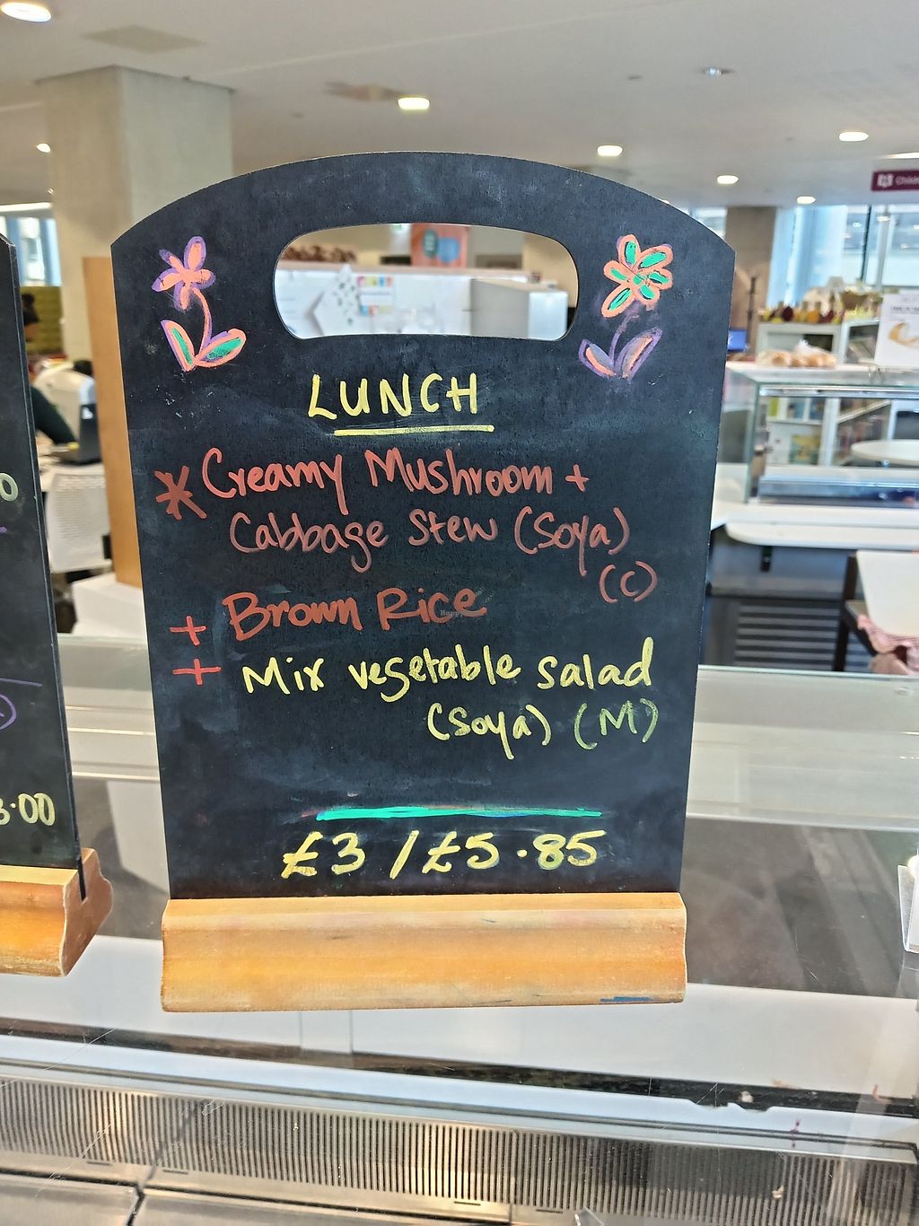 Read moreI had the creamy mushroom and cabbage stew (soya), with brown rice and mix vegetable salad, which was hearty and wholesome, and at just £5.85, real value for money.