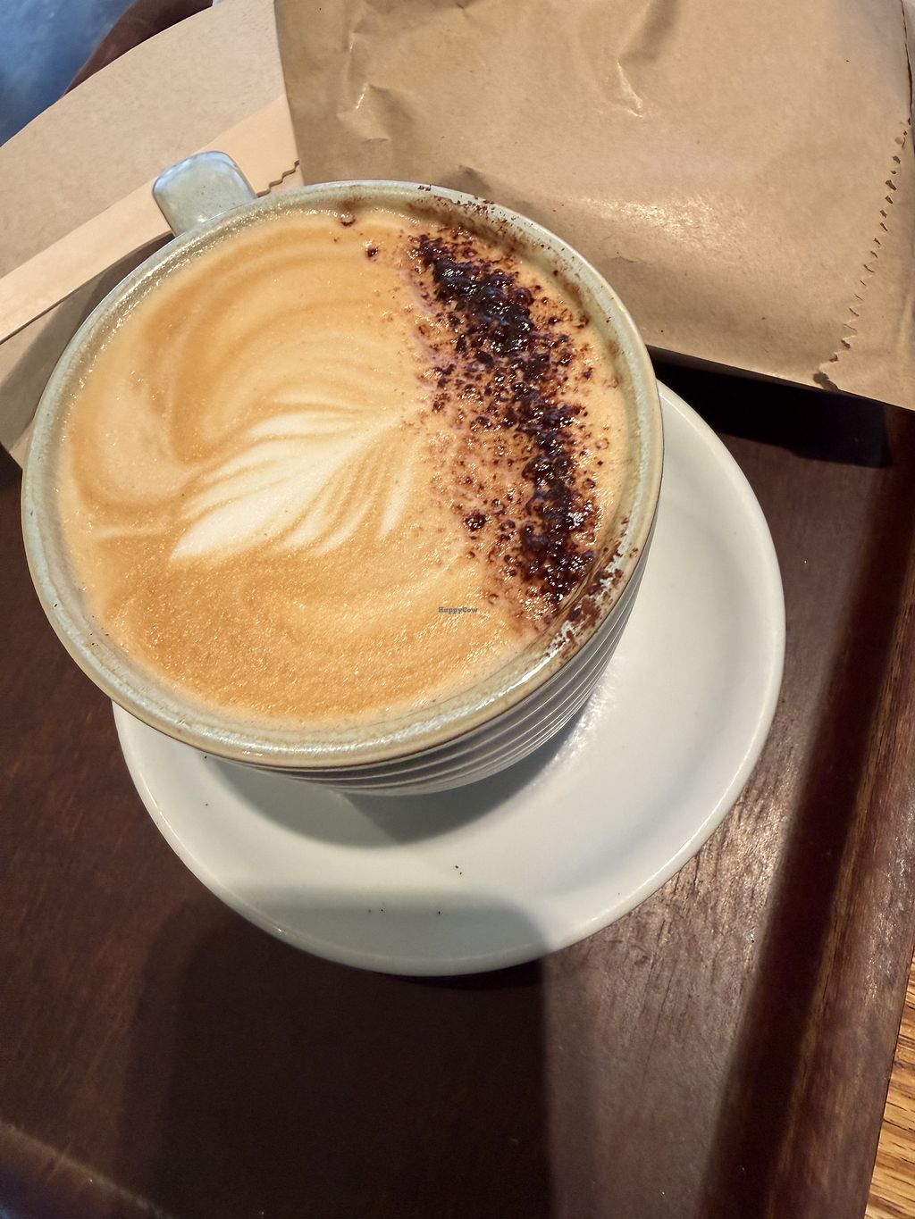 So many vegan options, the deserts really stood out, my non-vegan friends love the sausage rolls here too. Such a shame they carry dairy milk. They do ask your milk preference when ordering drinks though and I opted for soy. It'd be so easy for this place to go 100% vegan