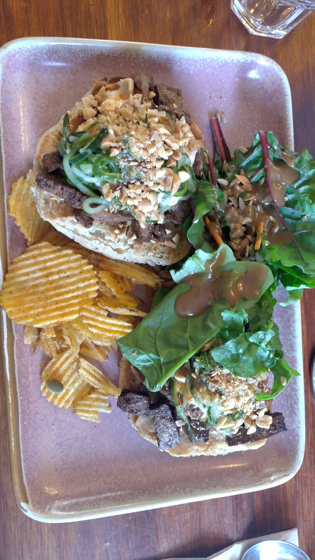 Ciabatta with pesto, vegan mozzarella, aubergine