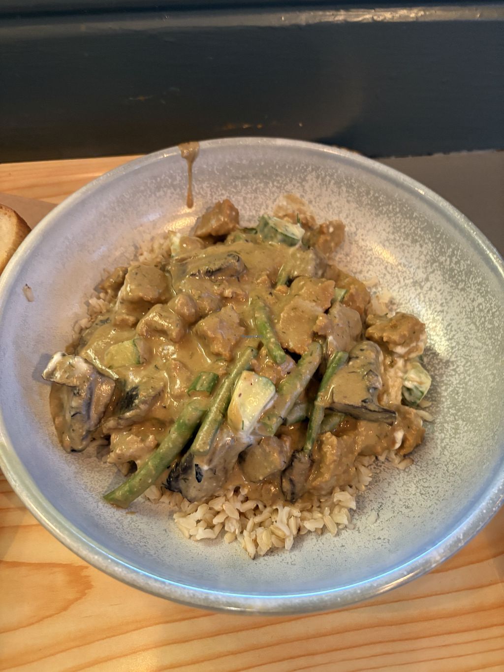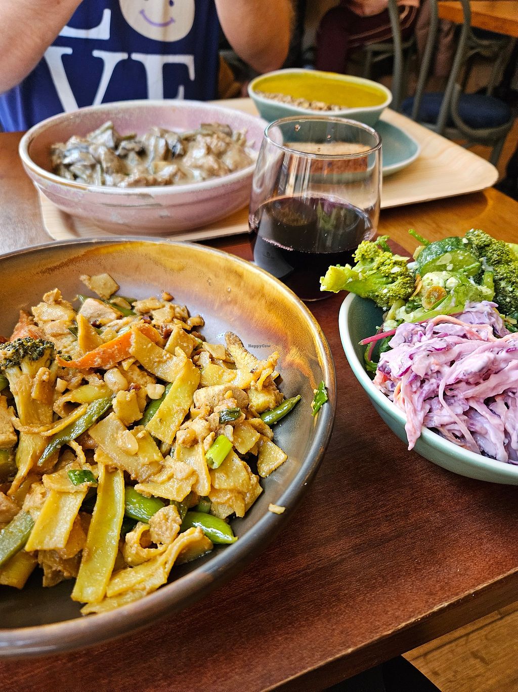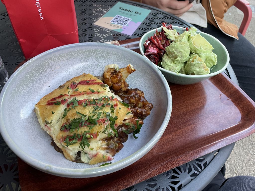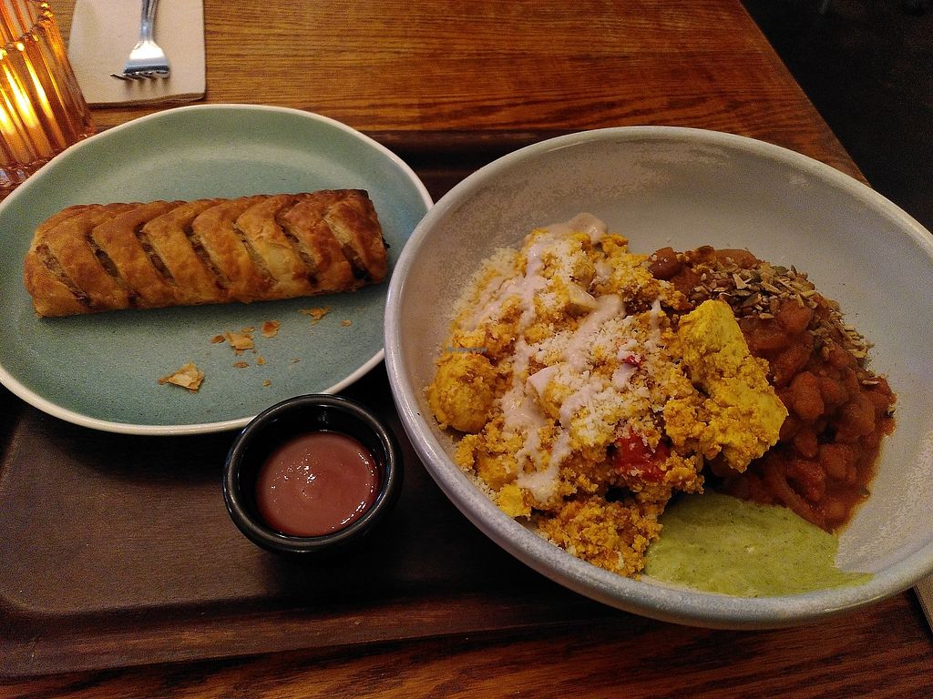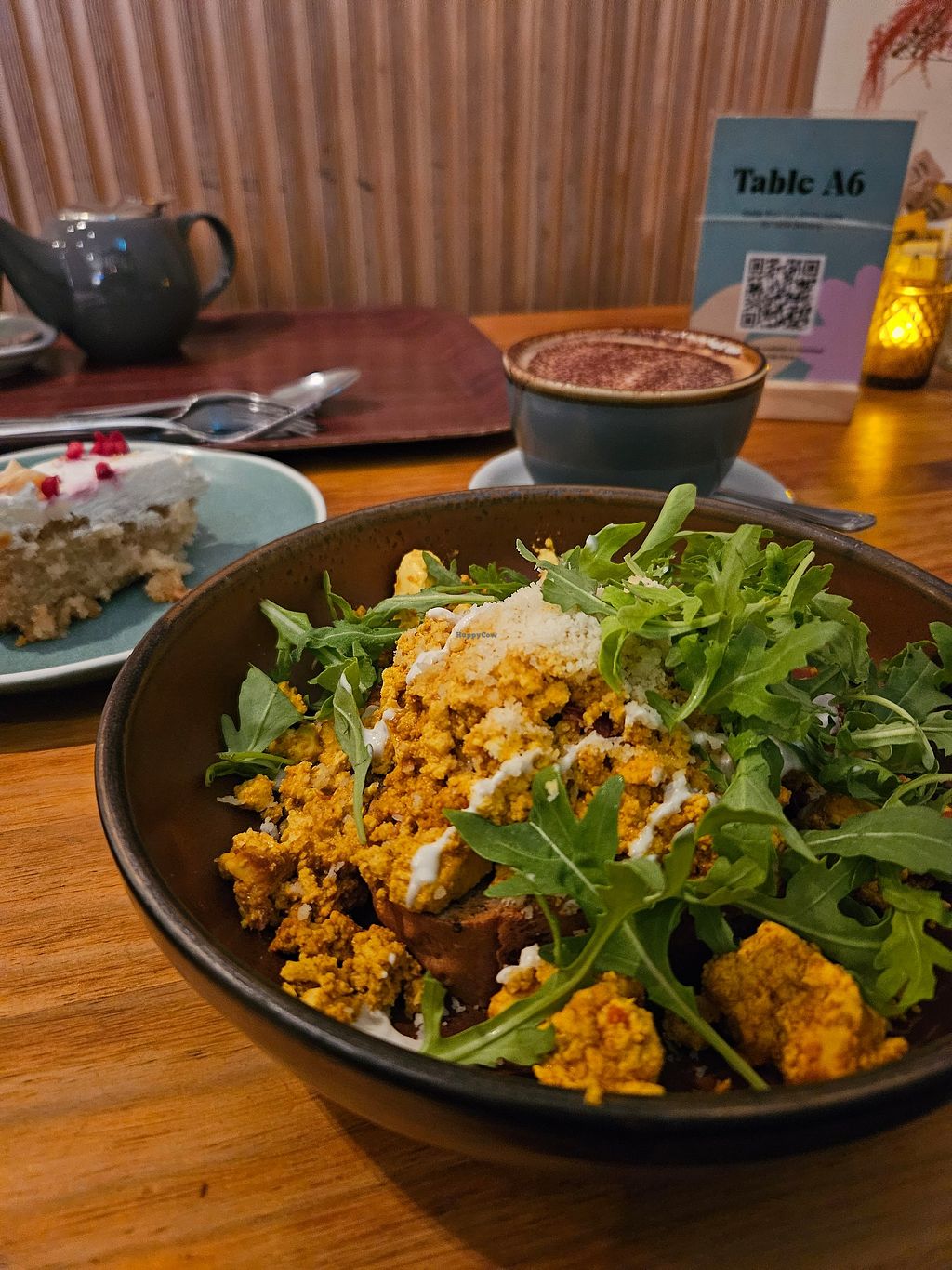 Breakfast options. I had the scrambled tofu nachos. We shared the past…