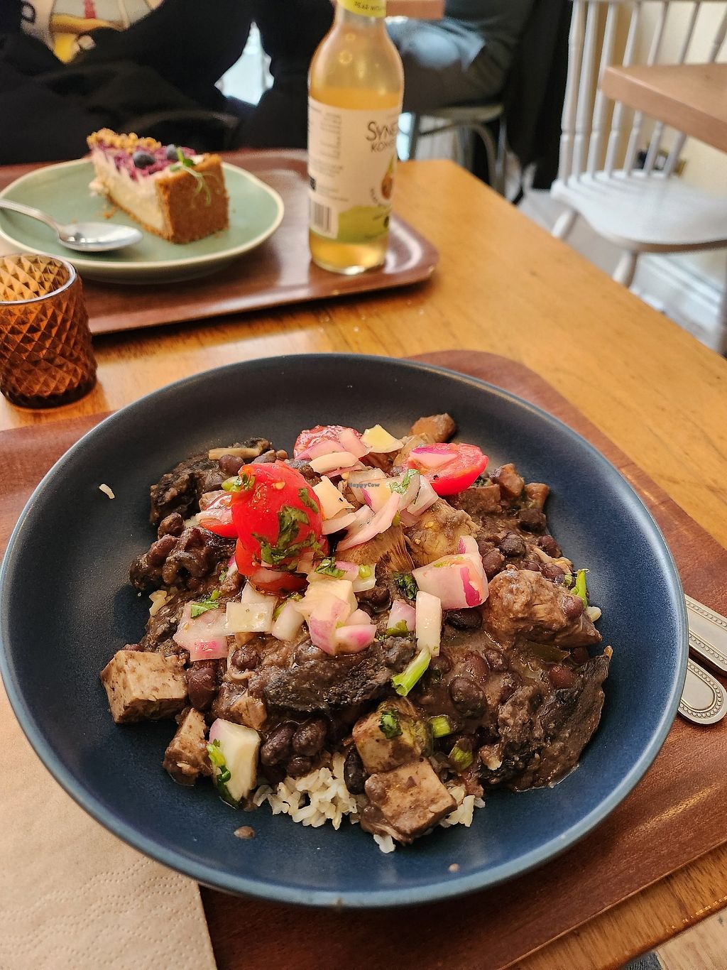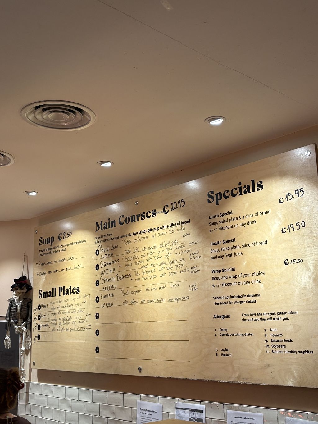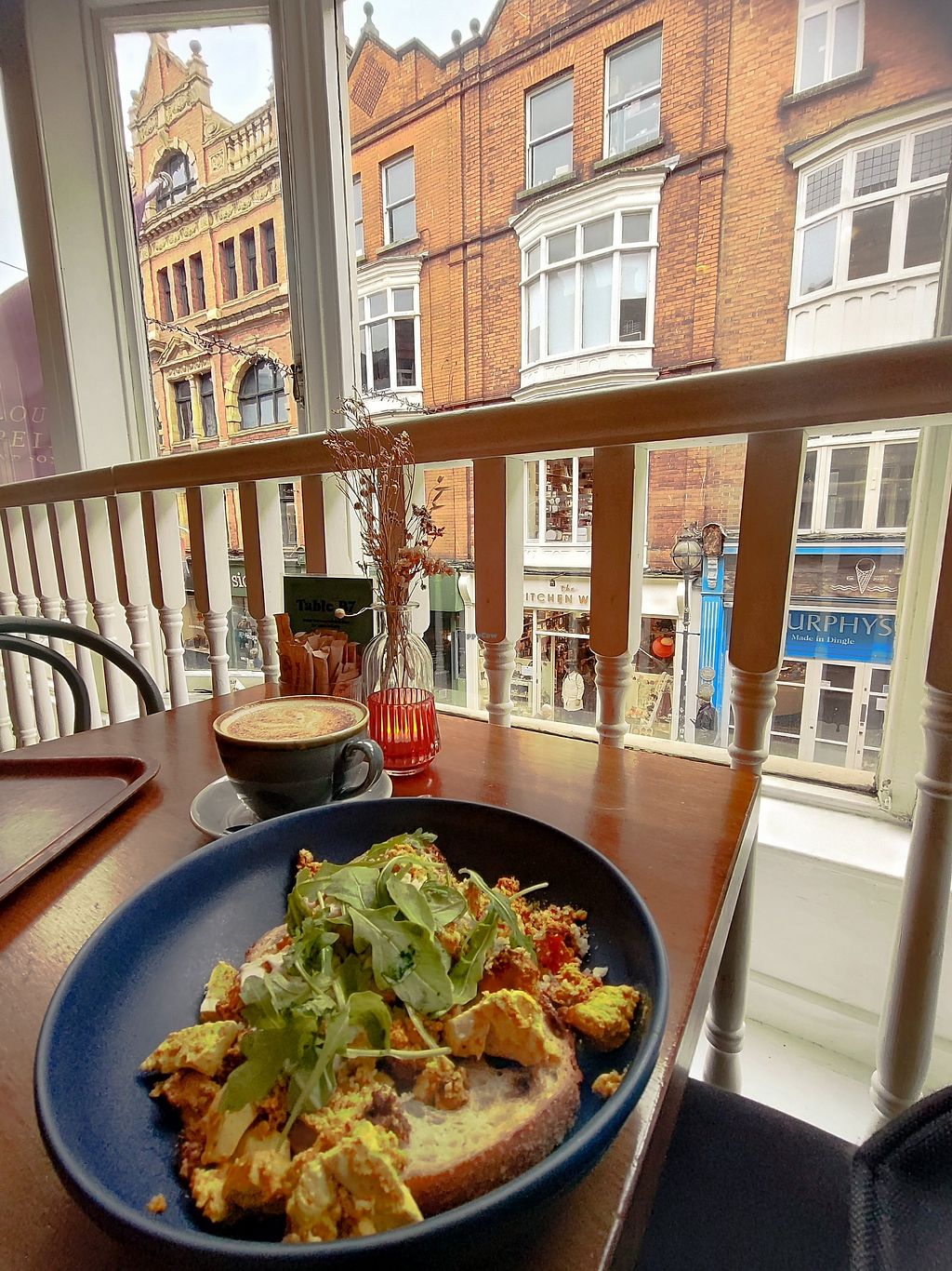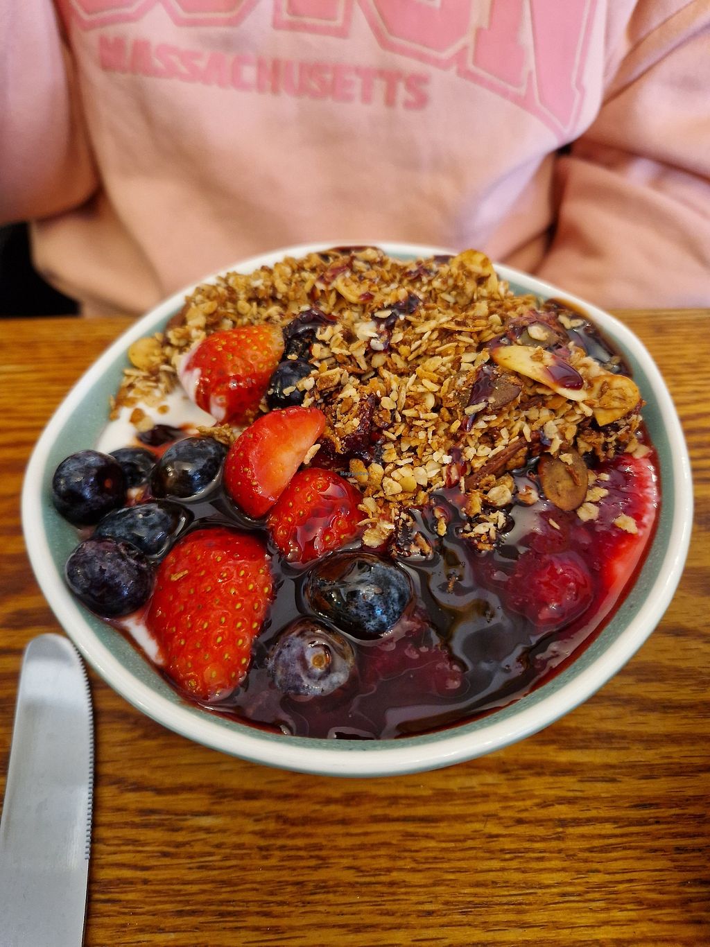 Breakfast options. I had the scrambled tofu nachos. We shared the past…