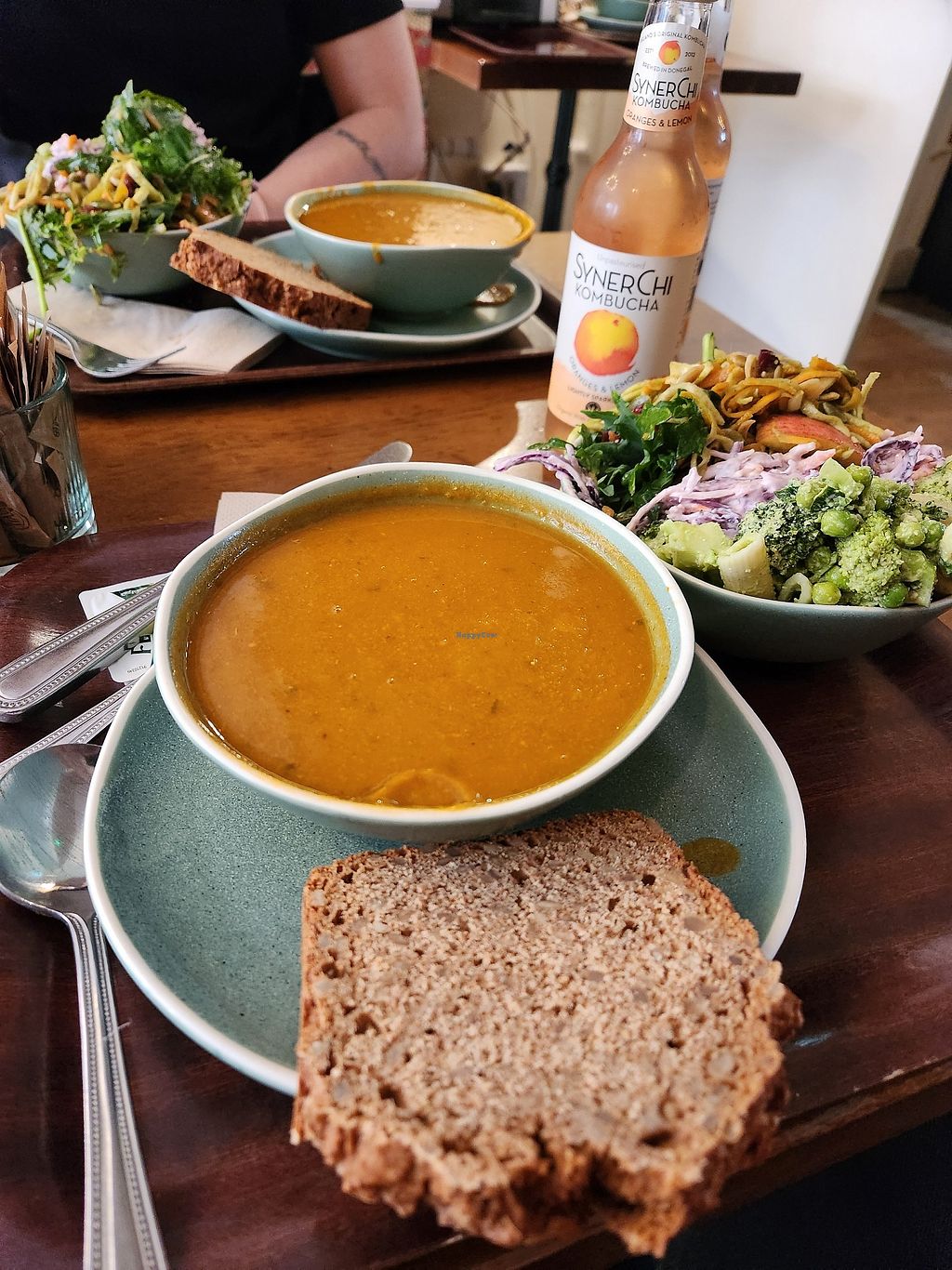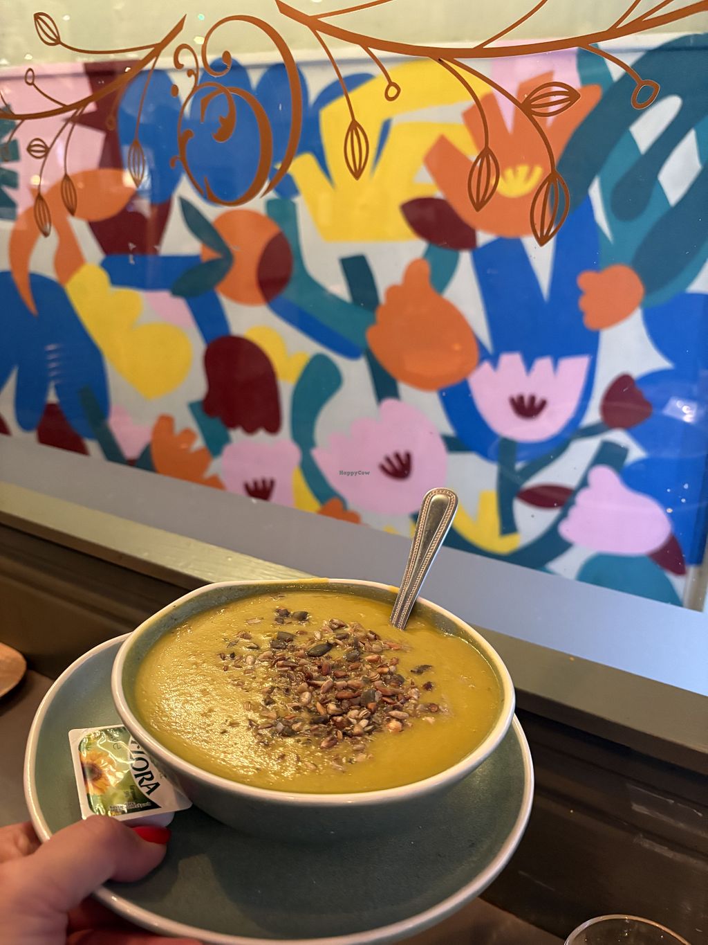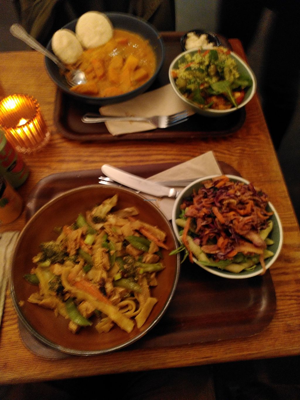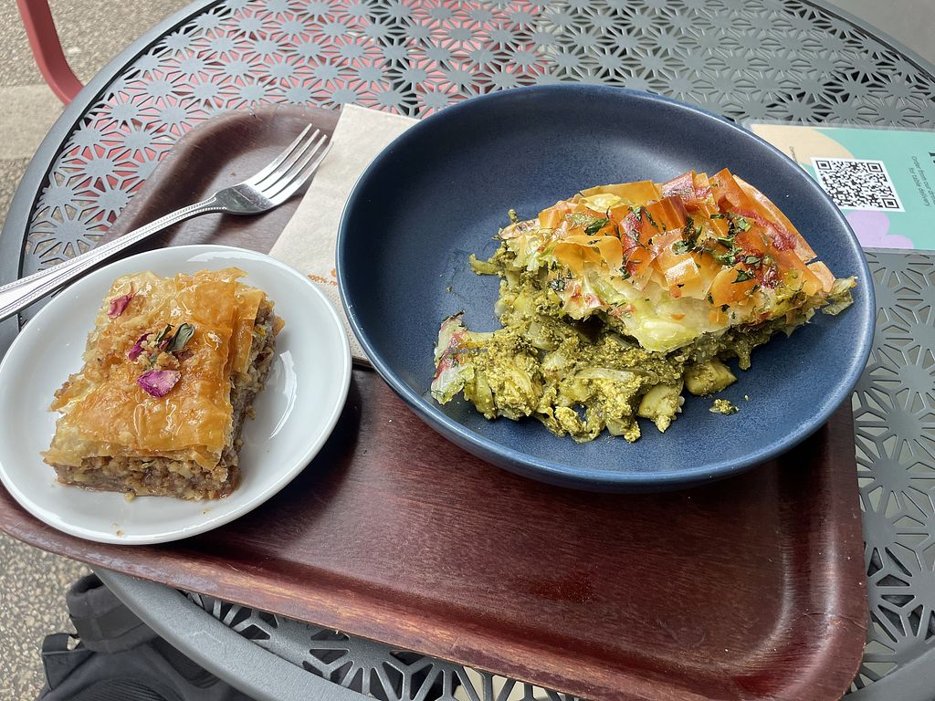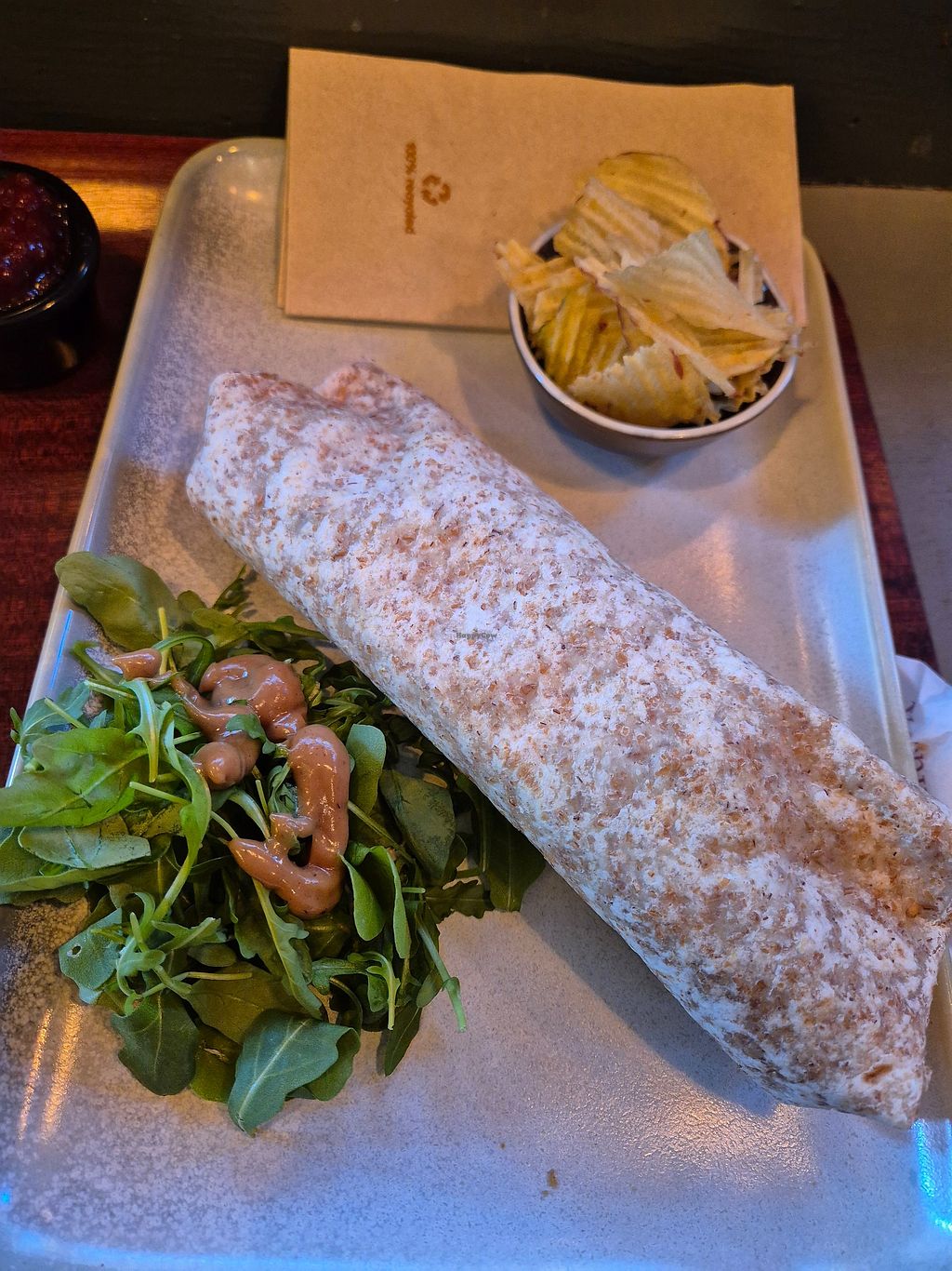 Breakfast options. I had the scrambled tofu nachos. We shared the past…