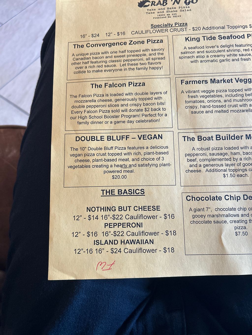 Got the Double Bluff. I appreciate having a vegan option close by and the pizza was pretty good. The staff was very nice and quick. But the price, ouch! $24 for a personal pizza. And the crust wasn't great, very thin and crispy but tuned mushy when reheated the next day.