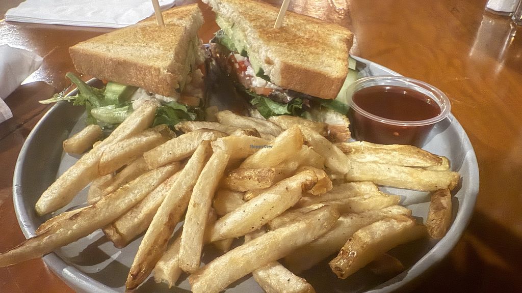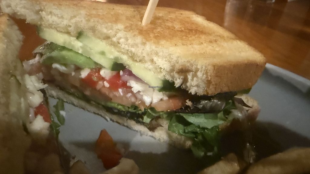The service was great they didn’t have a lot of vegan choices but I asked the waitress her recommendations and she told the mushroom sandwich was a good one so I chose that and it was delicious probably one my favorite sandwiches I ever had and I had their veggie with house made hummus that was also really good. Not having that many choices where I live I was happy to come across here.