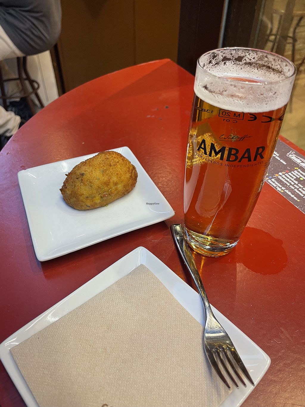 Serves meat, vegan options available. Tapas bar specializing exclusively in croquetas (croquettes). Vegan options include croquettes with carrots, chard, and curry. Open Mon-Thu 12:30-15:30, 20:00-23:00, Fri-Sun 12:30-16:00, Fri-Sat 20:00-00:00, Sun 20:00-23:00.