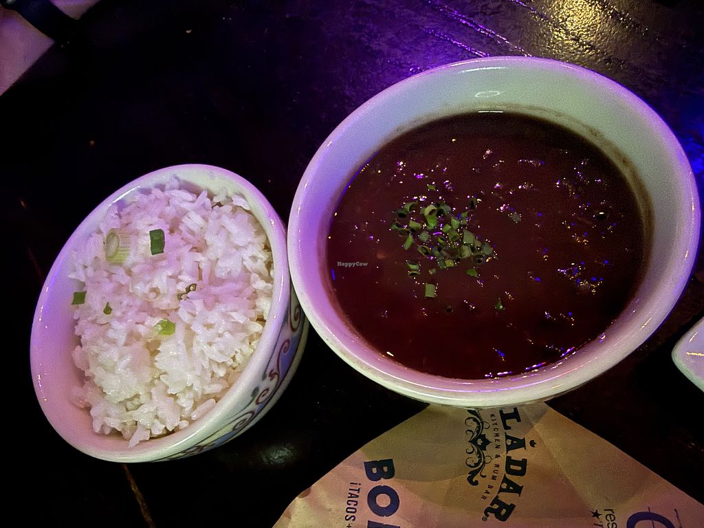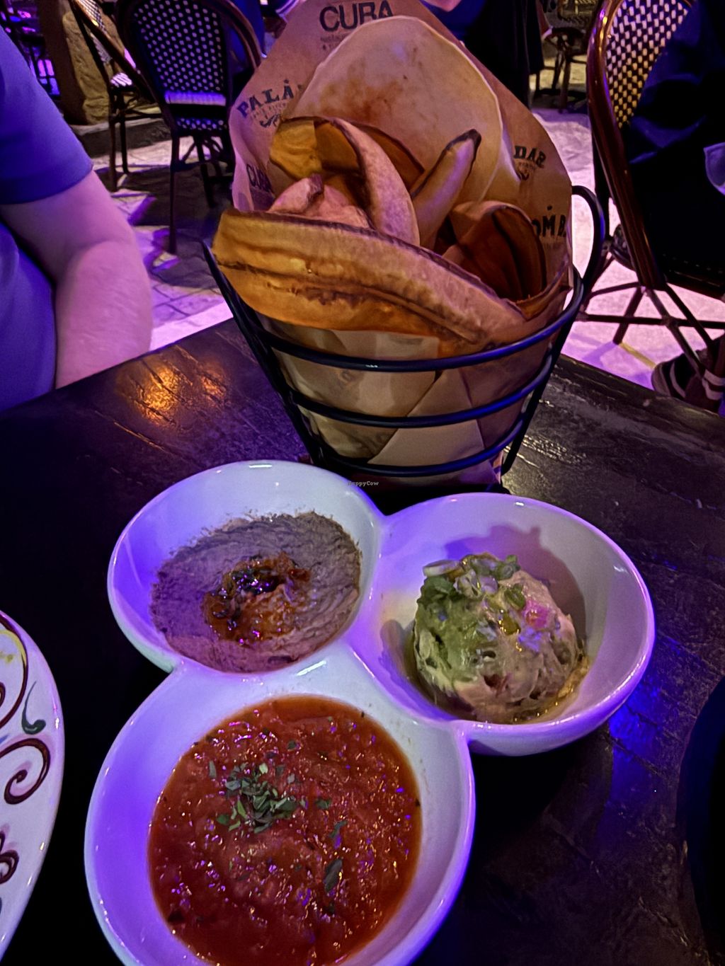 I got invited here for a birthday dinner and came with low expectations for the food. I was surprised to see several vegan options. Unfortunately I didn’t take pics but I had the vegetarian paella which comes vegan as is. The trio of dips (black bean hummus, salsa, & guac) is vegan as is also. I had that with a side of white rice, black beans, and tostones. This place has really dope vibes and is really big. A good spot for a date night. Definitely recommend