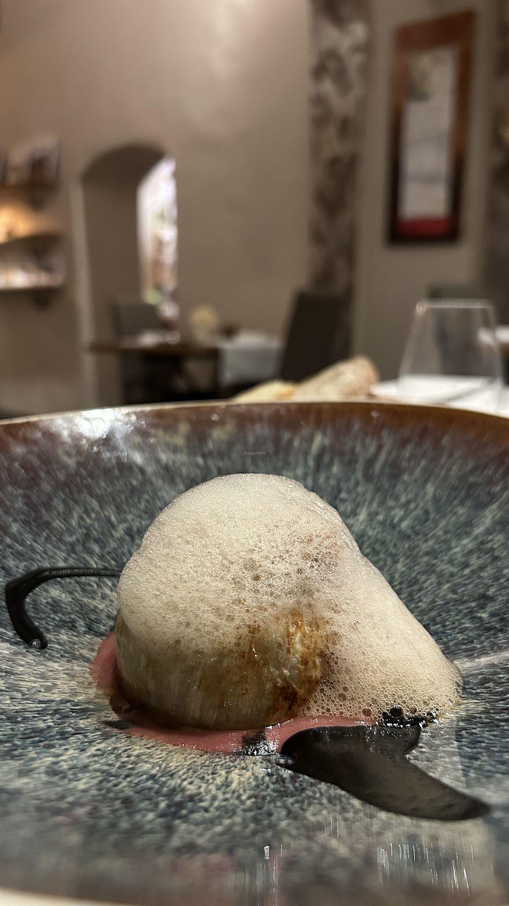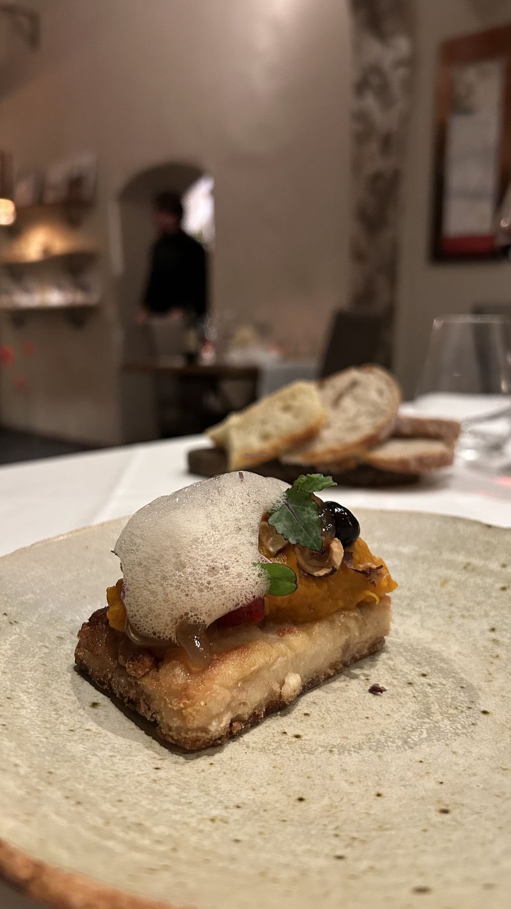 The food here was delicious. It began with a complimentary amuse bouche of carrot soup / purée topped with a melon foam and quinoa and mint crumble, which was full of umami goodness. Starters were just as tasty, and we tried the home made tofu and chard wrapped fennel. There were some really nice and new (to me!) flavour combinations in later courses, and they had a good range of vegan puddings e.g coconut creme brûlée which tasted great. We had good service throughout the meal, and it seemed like everyone else in the restaurant did too. I wouldn’t hesitate to recommend this place.