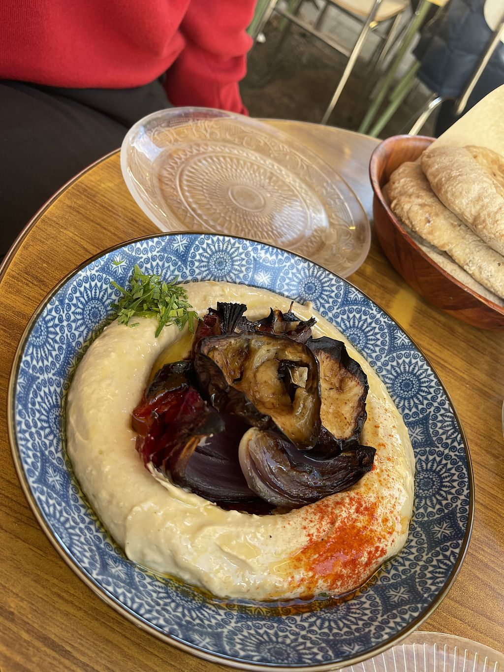 I was excited to go there and it lived up to my (high) expectations! The hummus with roasted vegetables was amazing, the hummus was creamy and silky in a way I didn't even know it was possible! (They also bring some toppings to the table like a orange cream that tasted delicious with the hummus.) We also had some falafels (amazing too) and the eggplant with pomegranate seeds, tahine and pine nuts (so rich in flavours and texture!). It's a place that every hummus lover should go!