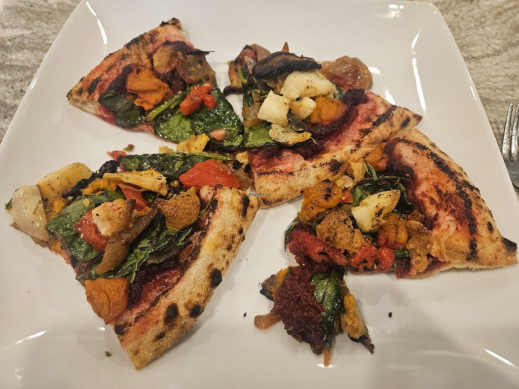 They have one vegan pizza with a beet paste base and it is so delicious. So fresh and simple and free of fake meats and cheeses.