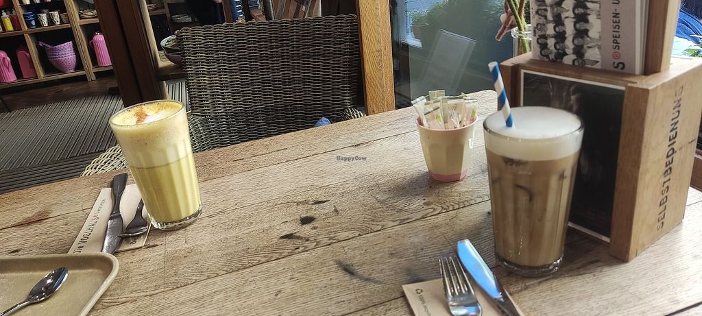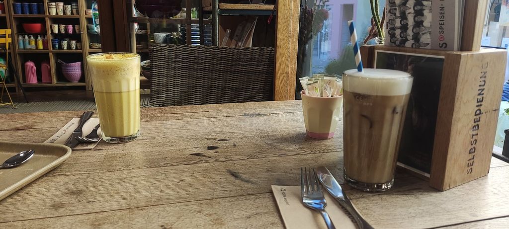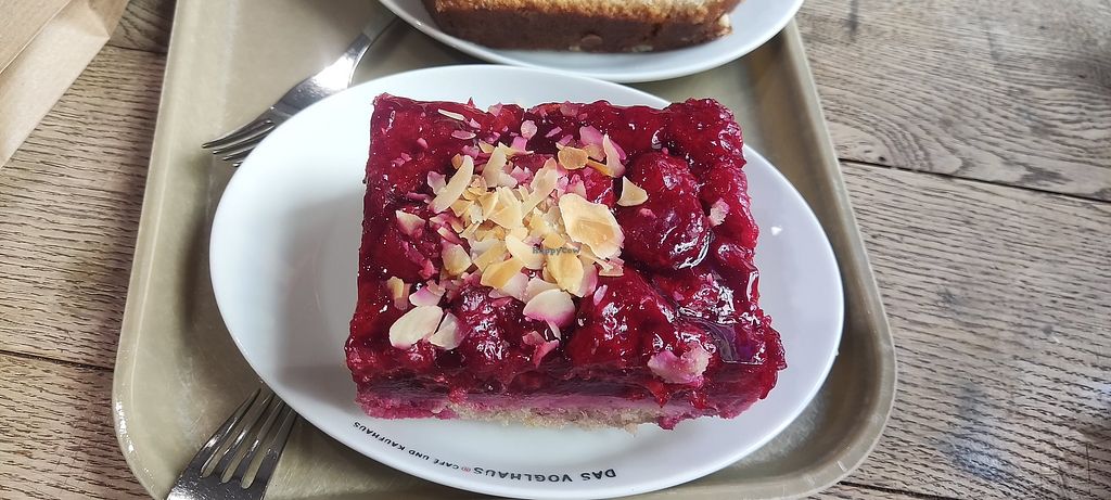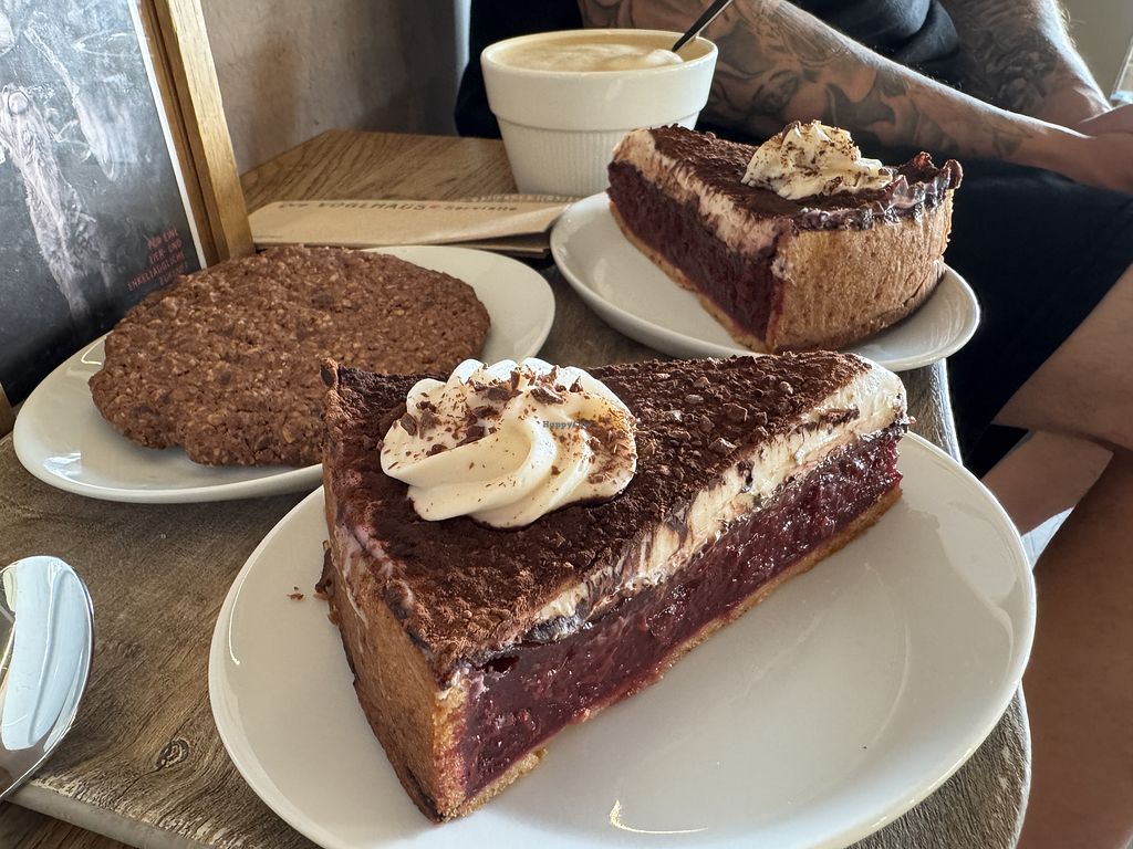 Read moreKomplett vegane Kuchenauswahl und auch warme Gerichte, was total super ist und auch alles sehr lecker klingt. Die zwei Kuchen, die wir probiert haben, waren leider eher trocken und nicht sonderlich geschmackvoll.