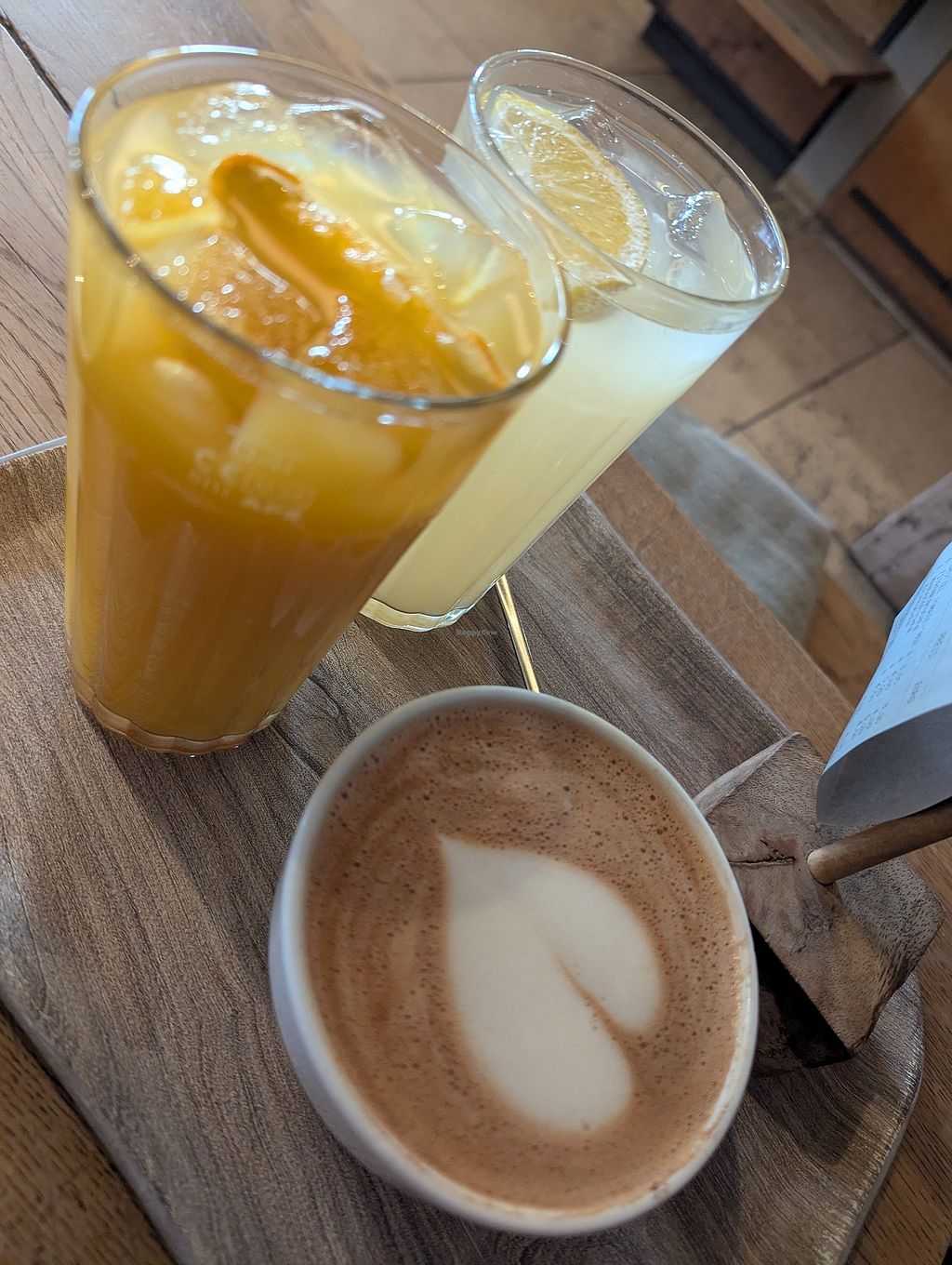 Read moreWir hatten ein Bruzelbrot Tomate Cashewmozzarella, Käsekuchen, Mangotörtchen und Zitronenkuchen sowie hausgemachte Zitronen- und Orangenlimonade und Moccacino.