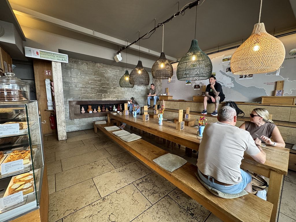 Little cafe and restaurant with a small shop inside. They serve coffee and cake but also few other snacks and drinks. Beside the food you can buy few items like ceramics, magnets, cards, candles, decorations and so on. You also can buy the bird sound on CD which you can enjoy in the bathrooms. The restaurant is splitted in two parts which are connected, but at least feel like two different restaurants.