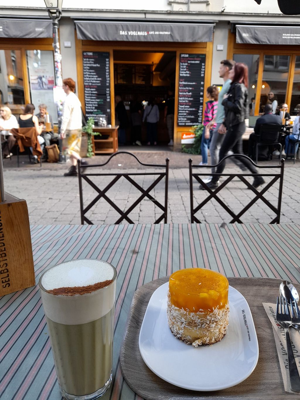 Es scheint definitiv viel los zu sein – besonders an einem Sonntag, aus offensichtlichen Gründen. Aber es gab genug Fluktuation, um nach einer Minute einen Platz zu bekommen. Die Atmosphäre war herzlich. Ich fand mein veganes Gebäck und meinen Espresso lecker und war dankbar, ein veganes Café in Konstanz zu finden! (Beachten: Als ich dort war, wurde mir gesagt, dass alles vegan sei, und angesichts einiger anderer Bewertungen hier frage ich mich, warum es nur als „vegetarisch“ gekennzeichnet ist.)