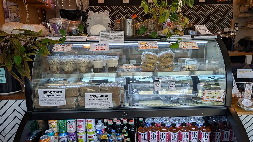 Really cool and chill place! Friendly employees! There's crafts from local artists and food from local bakeries. I got an iced latte and a seitan kolache.