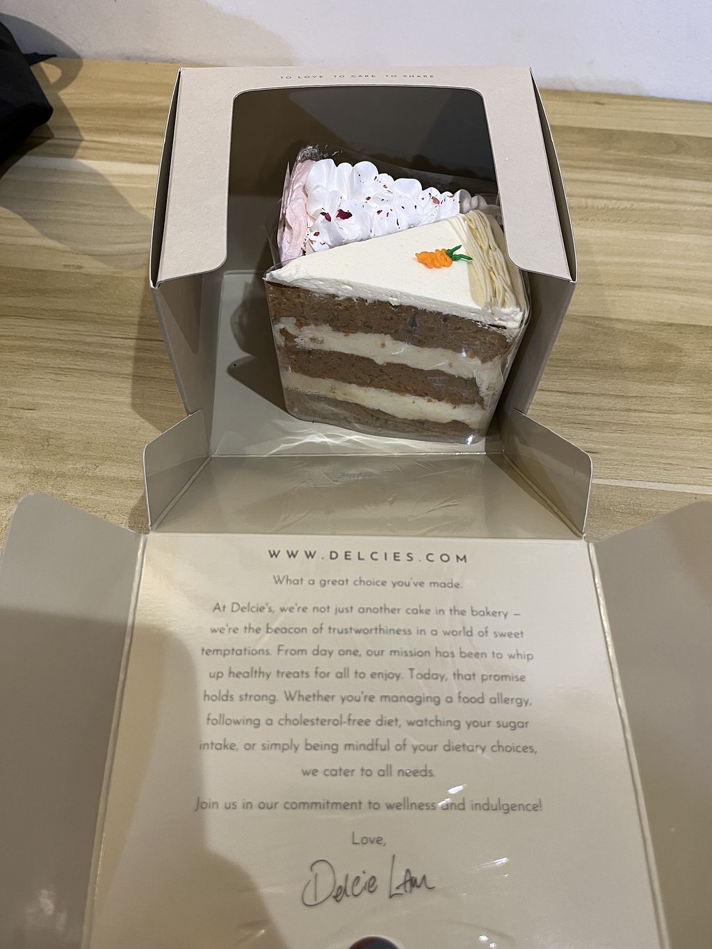 Read morethe cakes can be quite dense and on the sweeter side however they were still quite enjoyable in moderation. the price is on the steeper side for such a small slice of cake but nonetheless they use quality ingredients.