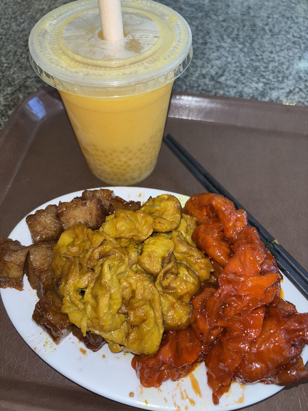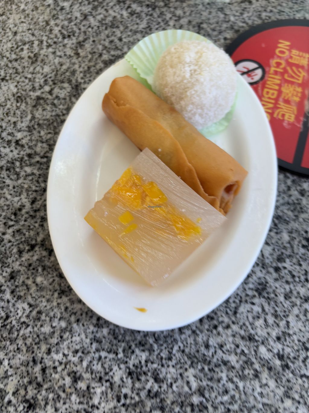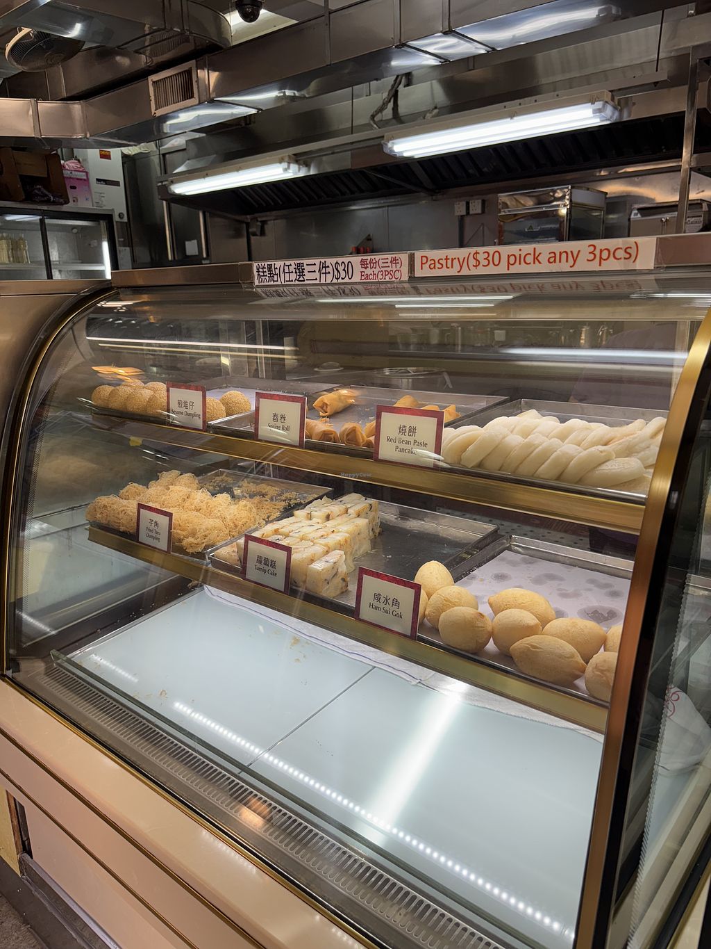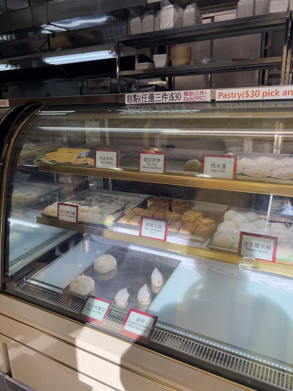 Right next door to the pricier restaurant, you can get a few snacks for lunch! Dim sum is three pieces for $30 and mixed veggie mock meat is $45. There's also noodles for $35. We ordered one mock meat, mixed dim sum and a mango drink! It was good! Considering the restaurant next door is $150 per person.