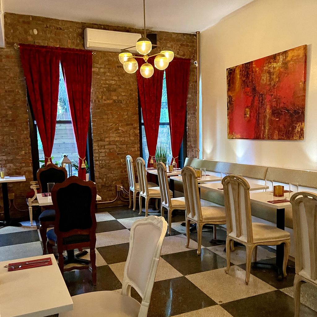 French style restaurant and creperie in the West Village since 2016. Dishes may include vegan steak truffle frites, coq au vin, poulet Basquaise, and crepes, both sweet and savory (galettes). Makes plant-based cheeses in-house. Small and intimate. Relocated from 20 Christopher St. Open Mon-Sun 11:00am-10:30pm. Bakery opens from 8am to 9pm.
