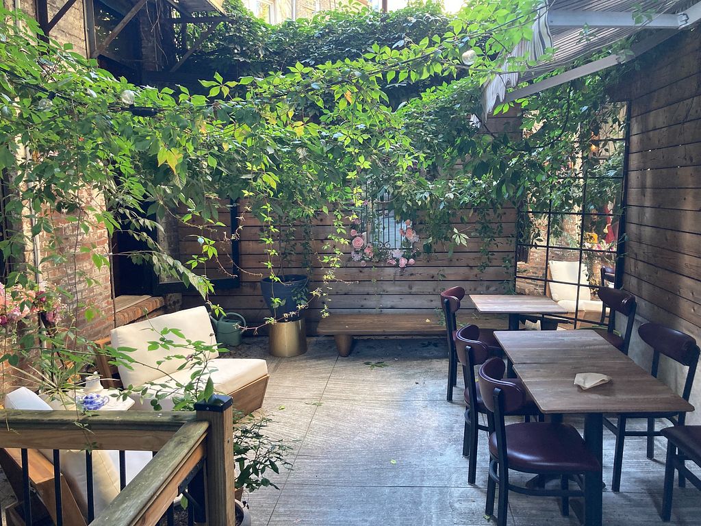 This all-very French bakery is run by the folks at Delice & Sarrasin, and house in the same address. However, Delice de Bernay has has different hours, and a complete separate location within this address to sip your coffee/tea and eat your pastries (or savory baked goods). You order at the counter, and they begin the food to you... there is a table up front, an outside table in front, and a patio with a bunch of tables and seats in the back.