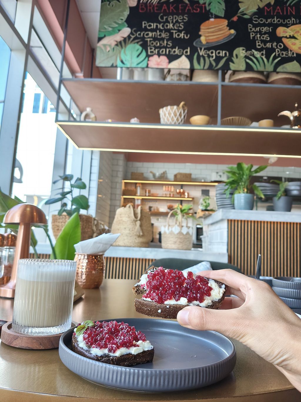 This is a beautiful cafe restaurant, with an incredible menu in the heart of Dubai near Marina. The food was amazing, with delicious and unique drinks (tried a bumble matcha for the first time). Homemade in-house desserts, the snickers dessert was amazing- and also takeaway pizzas. #Veganuary