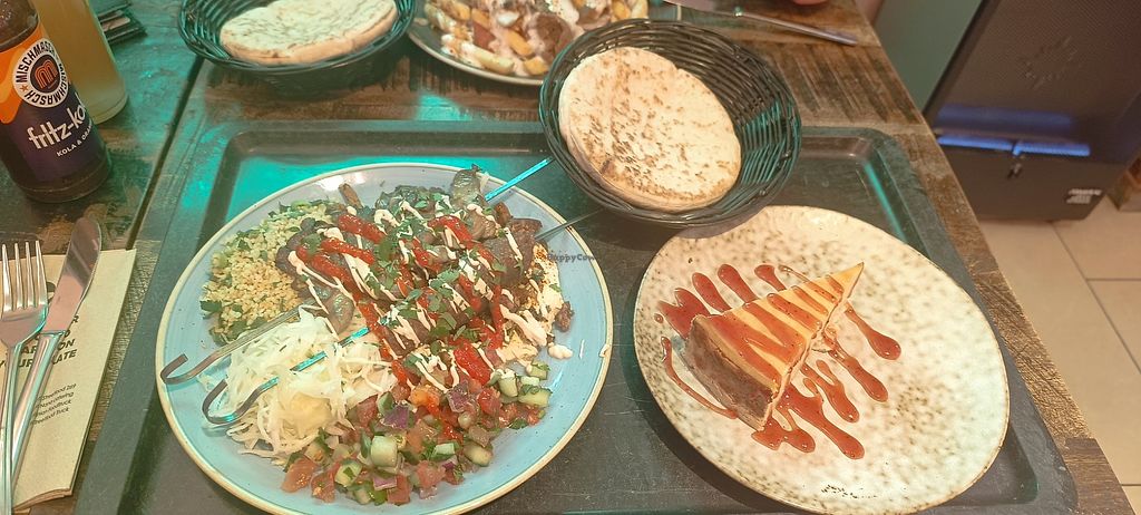 We discovered this place on accident because it is just around the corner of a vegan café we went to. Honestly have to say the food is one of the best I've ever had. We already went two times and tried their vegan shawarma pita, kebap pita, crispy chick'n burger, double cheezeburger and loaded shawarma fries so far. The food just tastes exactly like the non-vegan variants if not better. Portions are also quite big and the prices are affordable. Also tried their berrylicious cheesecake and wow - soooo good! Staff is also super friendly. One time they messed up our order and offered us a cheesecake for free. Will forever recommend this place!