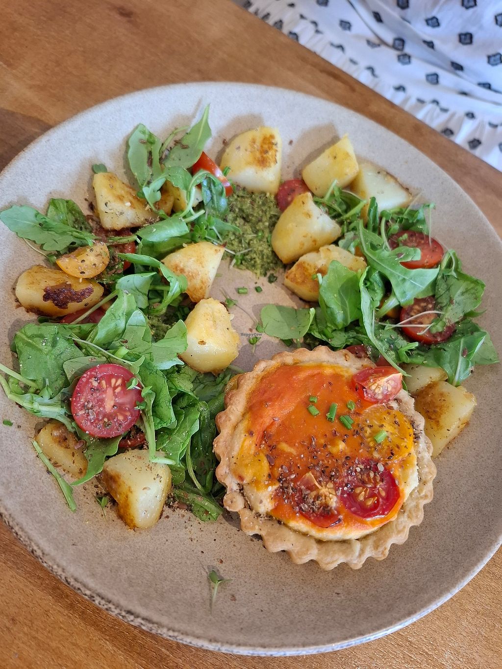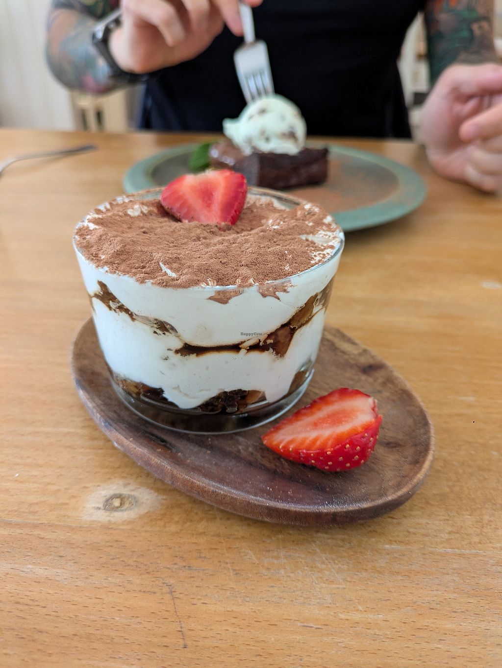 The only reason we are not giving a 5 star is because they are not fully vegan, they still serve cows milk in drinks 😔 but aside from that everything is Vegan 😍 and soooo tasty ! The food here is amazing, all fresh organic and refined sugar free. Some dishes are pricey but you get what you pay for, quality ! We highly recommend a visit here. The vibe is cosy and super cute, owners and staff are really lovely. We actually got our wedding cake from here last year because the food and cakes are that good !! Last time we went we had the afternoon tea, did not disappoint !!