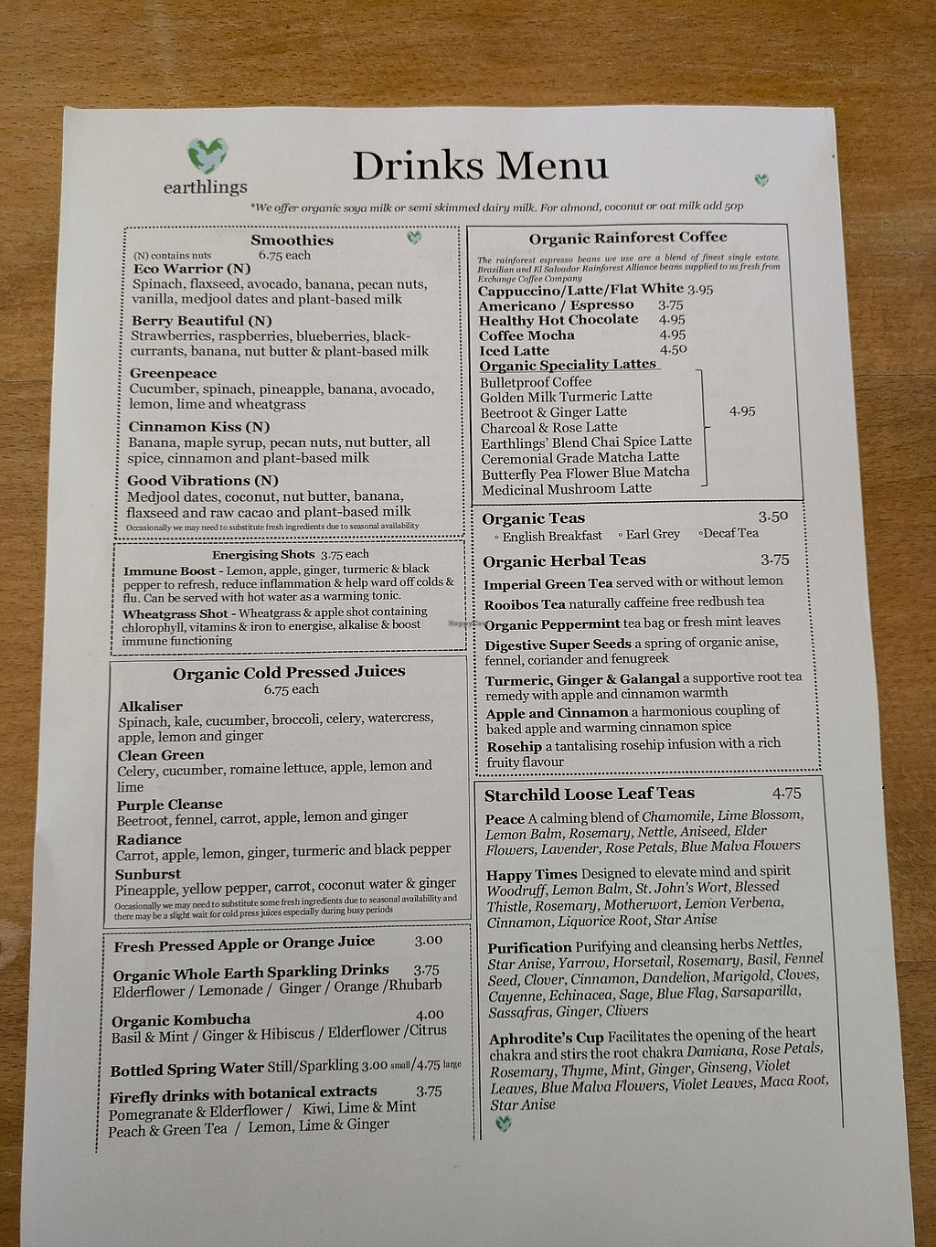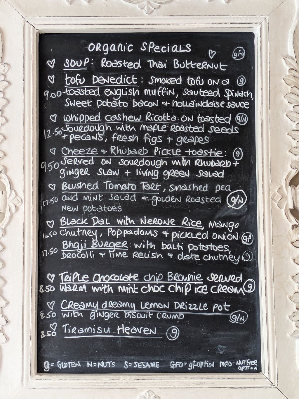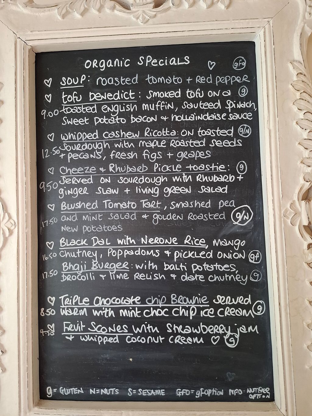 This place really does have everything! It’s organic, fully plant-based (apart from the fact they serve dairy milk as well as plant based milks), dog-friendly and, based on some of the deco and signage, a little bit woo woo! We ordered the Earthlings breakfast and it was absolutely delicious and really well thought out - not just an attempt to copy paste a normal English breakfast. Everything on the menu is like that. They’re obviously very intentional about what they serve. And lastly, the place itself has a really nice, cosy vibe - with fairy lights and candles, shabby chic furniture and chilled music. Will definitely be back.