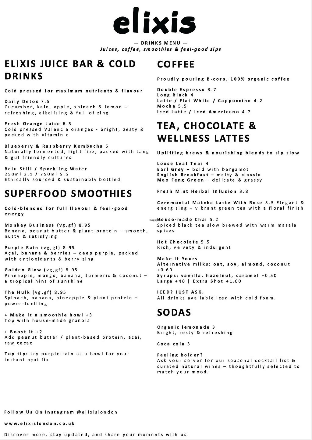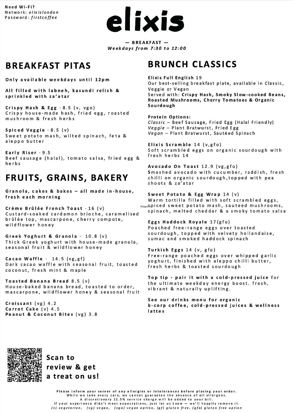 I visited Elixis for brunch and was pleasantly surprised by the variety of vegan options. I had the vegan full English, which came with fresh sourdough, avocado, beans and a plant-based sausage.