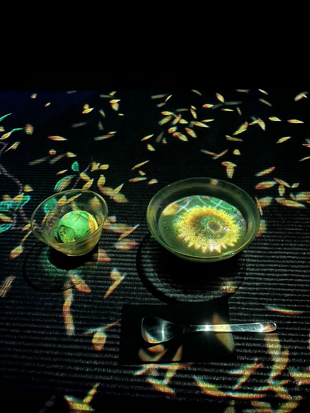 It gets 5* because it's a cool extension of the gallery itself. They project images of blooming flowers into your cup, so as long as you still have tea in your cup the projections will go on. You also get projections of branches and butterflies coming out from the gelato bowl.