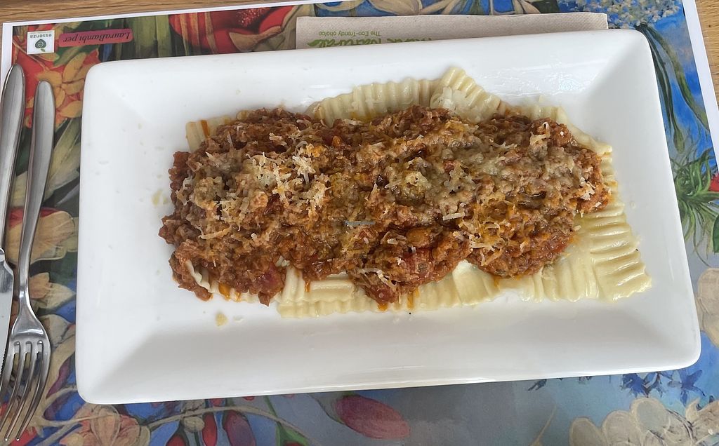 Pici con crema di zucca, champignon crema e briciole di pane e tortell…