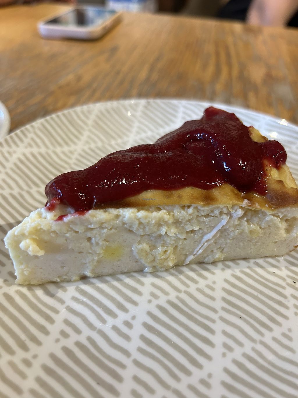 Chai latte, orange juice, black rice croissant filled with pistacchio …