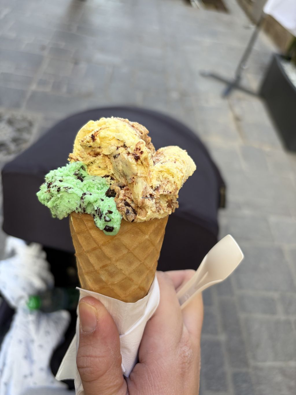 I had mint, almond crisp and chocolate. All three were delicious, cost me 4.5 euros.
