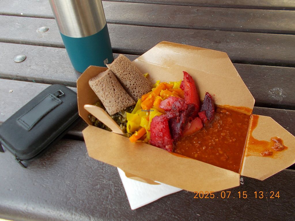 Delicious, home-made Ethiopian food. It's not something I'd eat frequently but it's nice on occasion. Can't give 5* stars as not fully vegan.