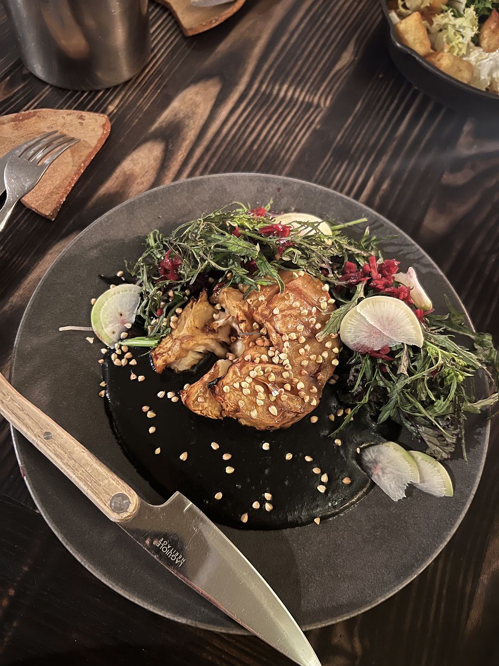 Thai green curry and black garlic parmentier