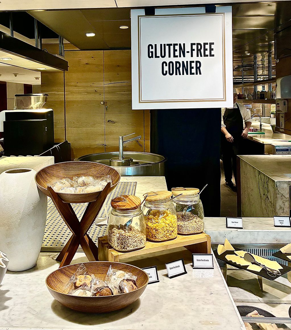 Serves meat, vegan options available. International buffet restaurant offering vegan options, clearly marked for easy selection. Vegan menu items include fresh fruit, cereal, baked beans, hash browns, porridge, vanilla muffins, and a salad bar with breads. International are also offered, such as Gyoza (Japanese dumplings), Bao (steamed buns), Sambar (South Indian lentil-vegetable stew), and more. Open Mon-Sun 6:30am-11:00am, 12:30pm-3:00pm, 7:00pm-10:30pm.