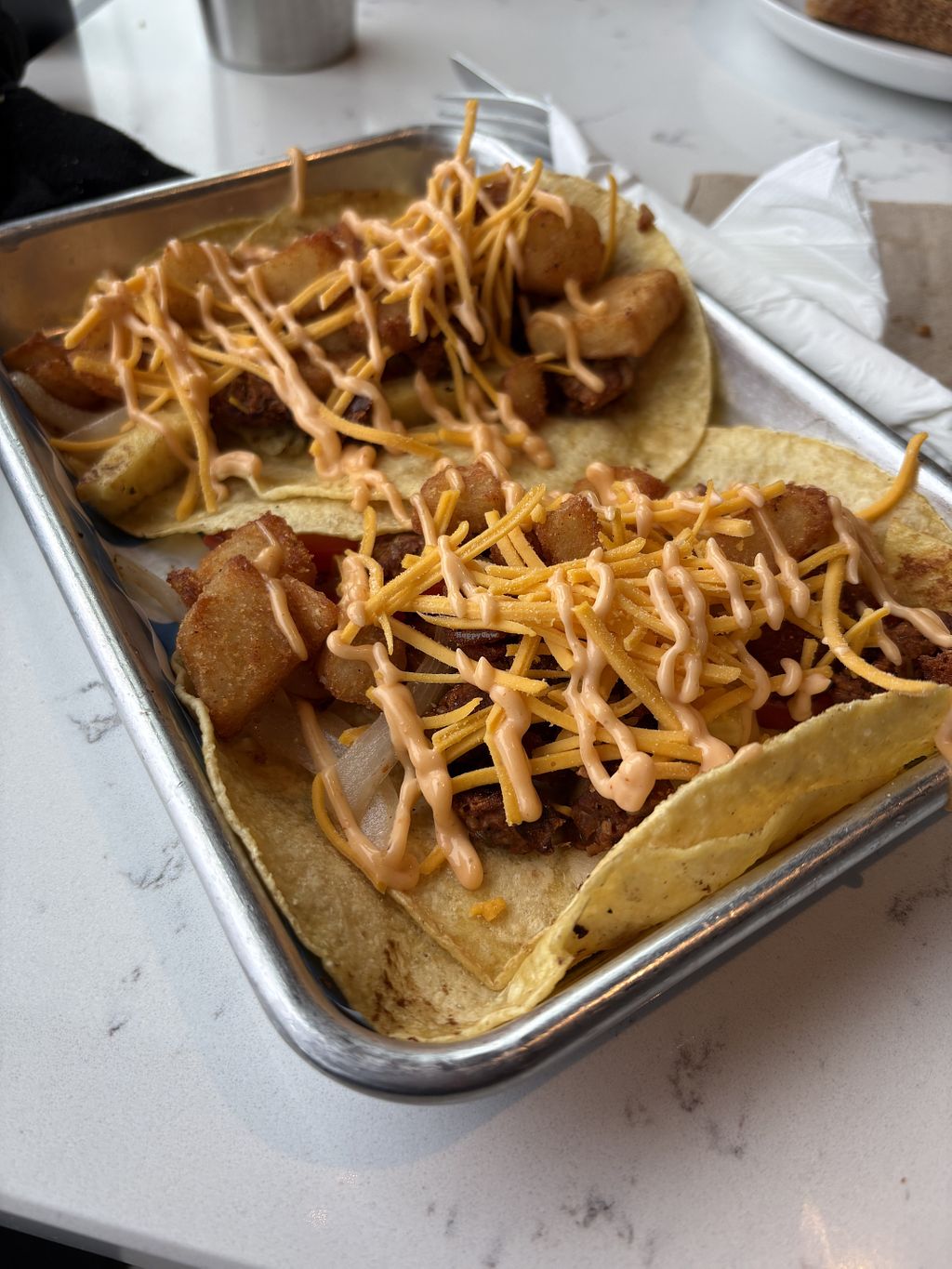 Love this place! The food is always great and staff are super friendly. There’s a lot of good flavors with the dishes. Some of their sweet options are a tad too sweet for me but if you have a sweet tooth you’ll be happy! The tater tots had the best cook on them, so good. I also got the cherry pie match and this was out of the world. Can’t wait to go back and try more.