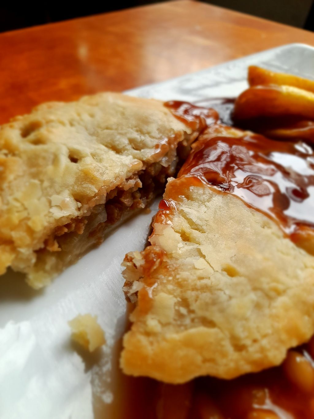 Read moreFat chunky English chips with proper Chinese chippy curry sauce, hotdogs smothered in goodness, spicy burritos with homemade flour tortillas, and a huge pizza with fantastic melty cheese. The cheesecake was yummy, too.