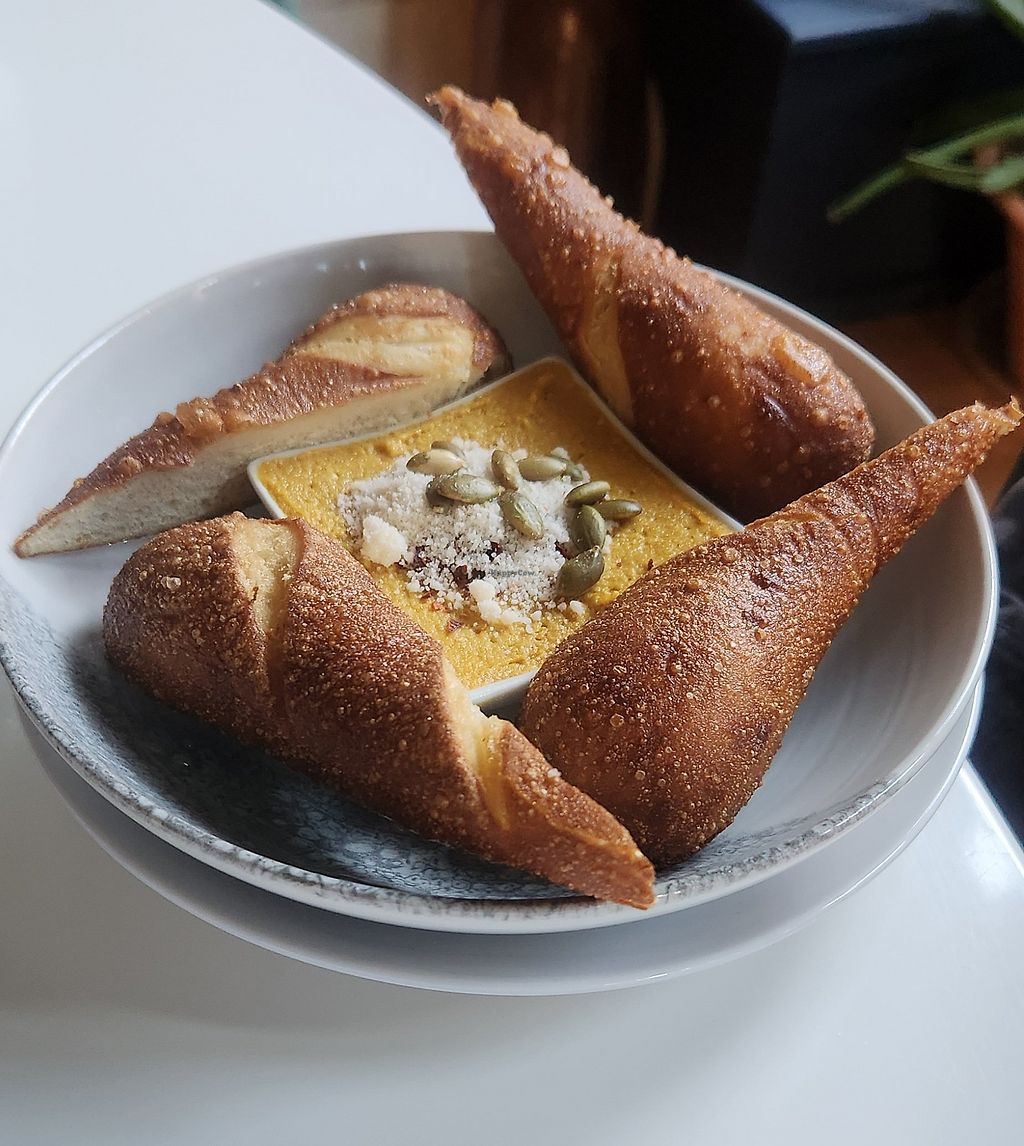First time here and it’s a must-hit for vegan food. Everything was fun and unique from the drinks to the food, and they have multiple mocktails, which Im a big fan of. We had the edamame wontons, which were delicious and the sauce on them was soooo good. We also had the pea & chickpea meatballs and the garlic & parsnip ravioli. I have a nut allergy and they were really accommodating, and many of the dishes with nuts just have them as a topping, so they can be done without easily. The service was great too- everyone was so nice.