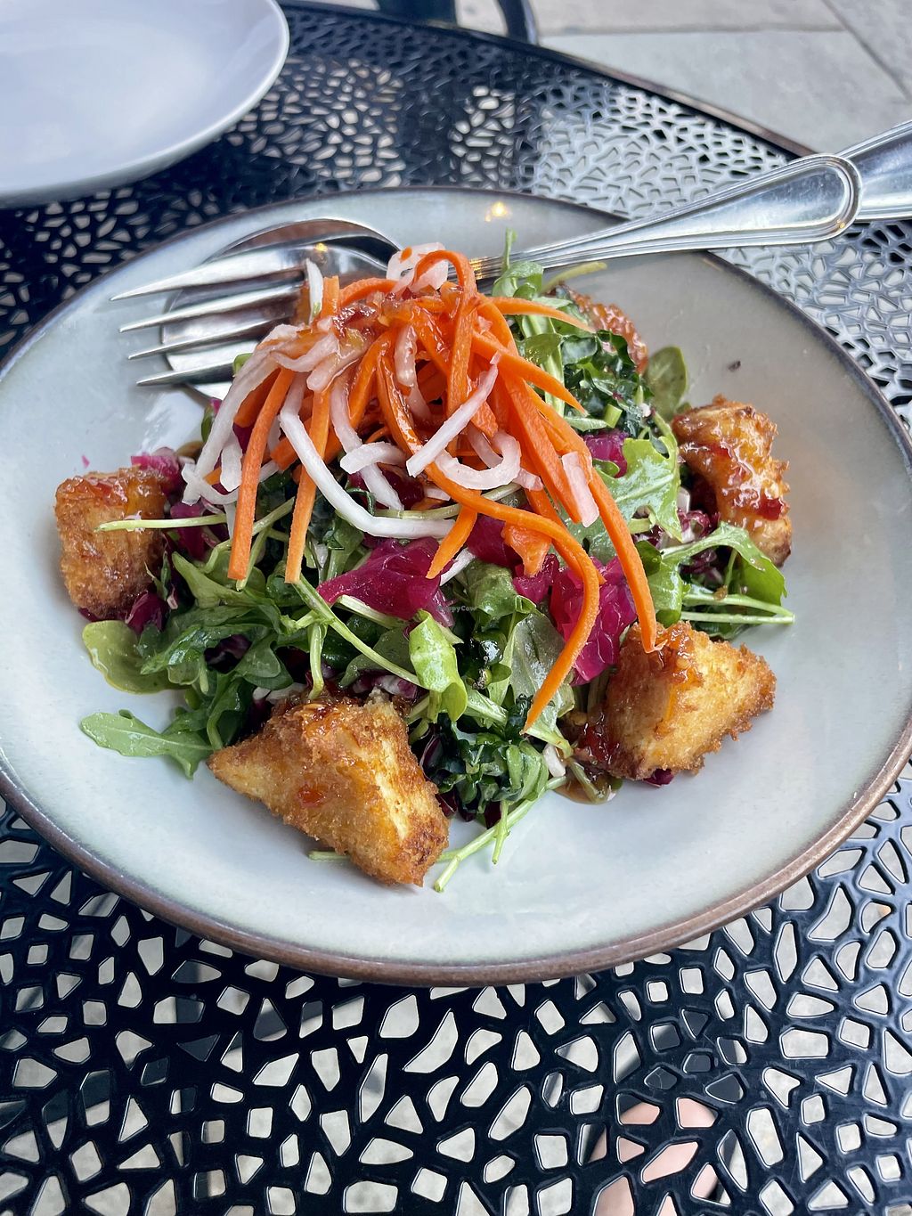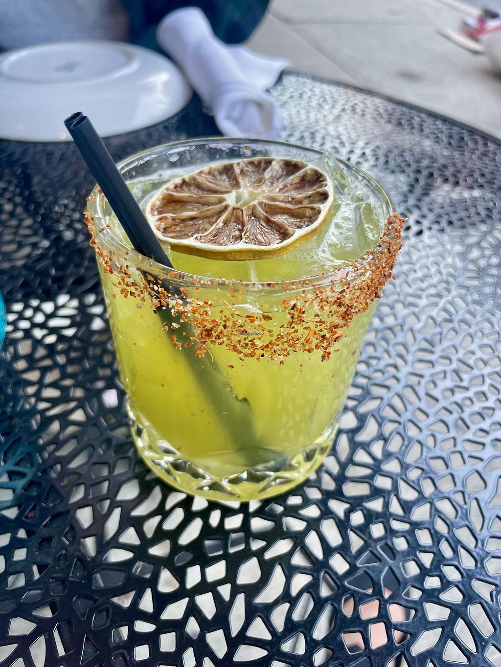 Mocktail zero proof tequila with pineapple juice, lime, and jalapeño