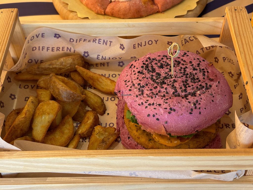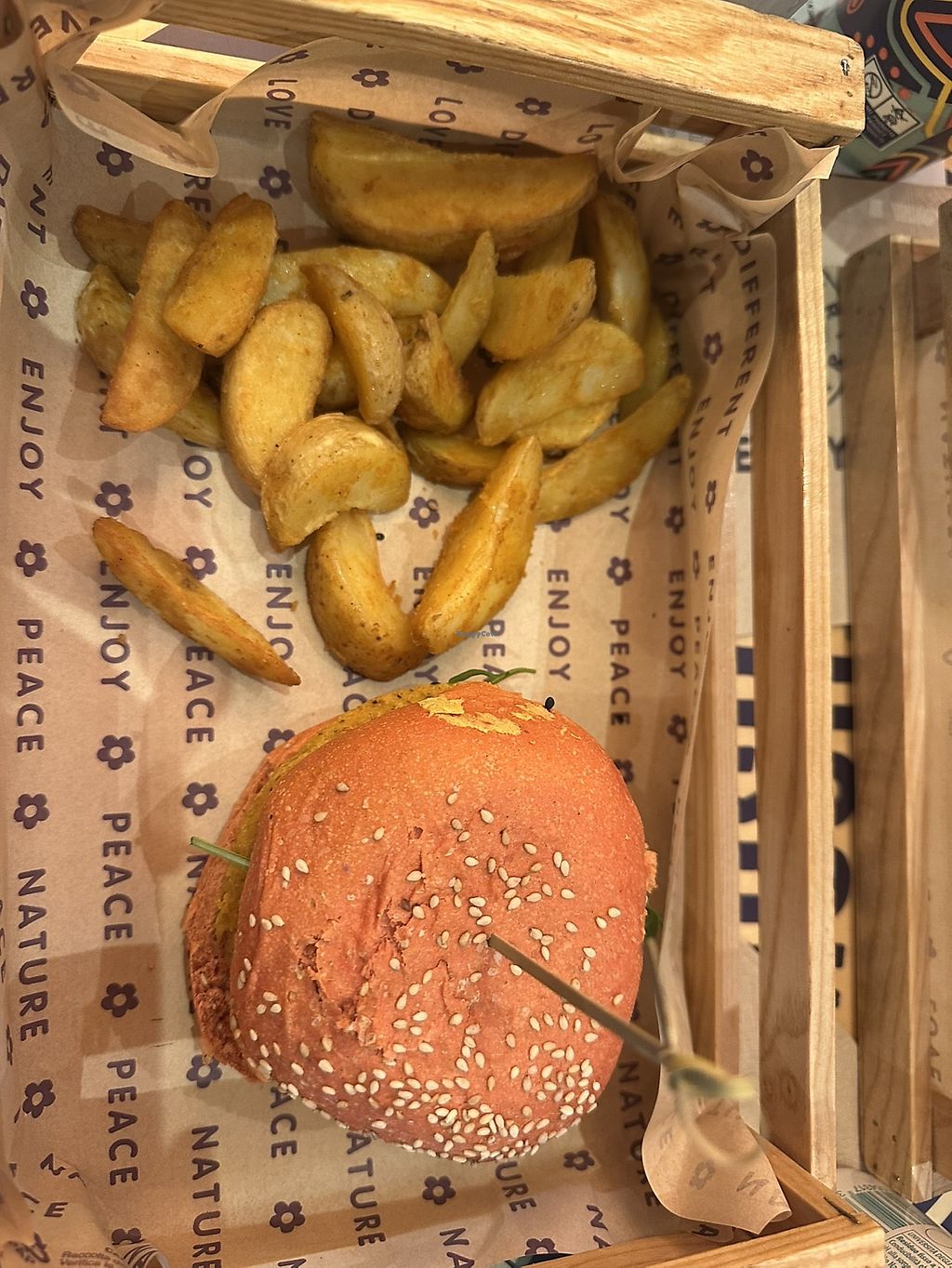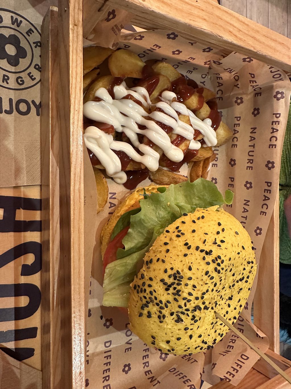I was skeptical because of the patties and buns but it was so tasty! I got the flower burger, my partner got the kebroll and we shared some nuggets, the nuggets were one of the best I’ve had!