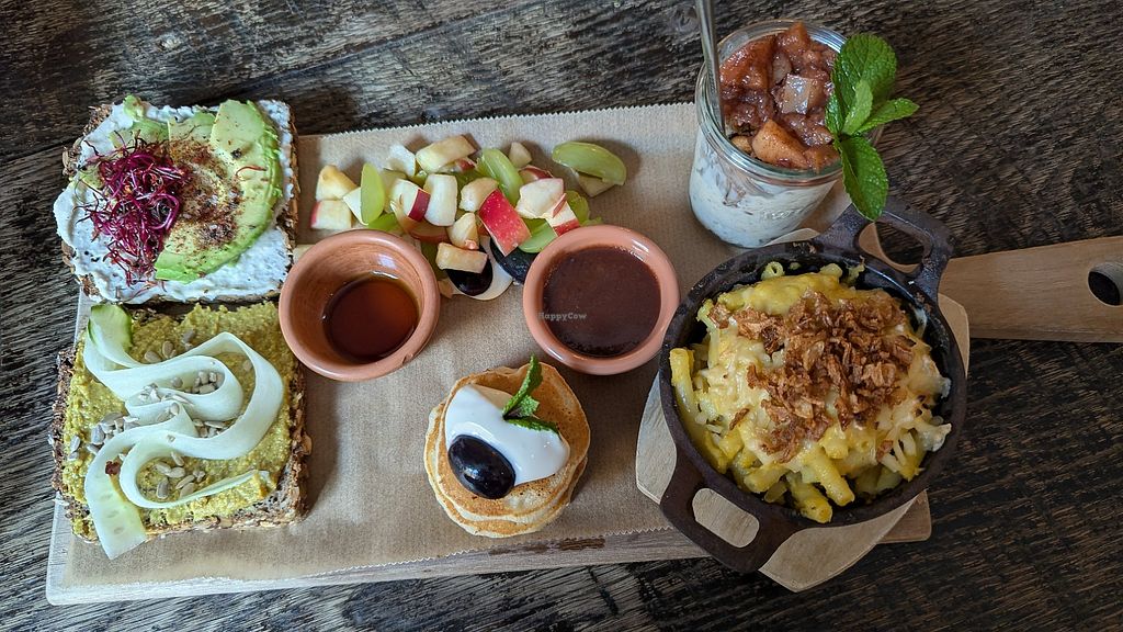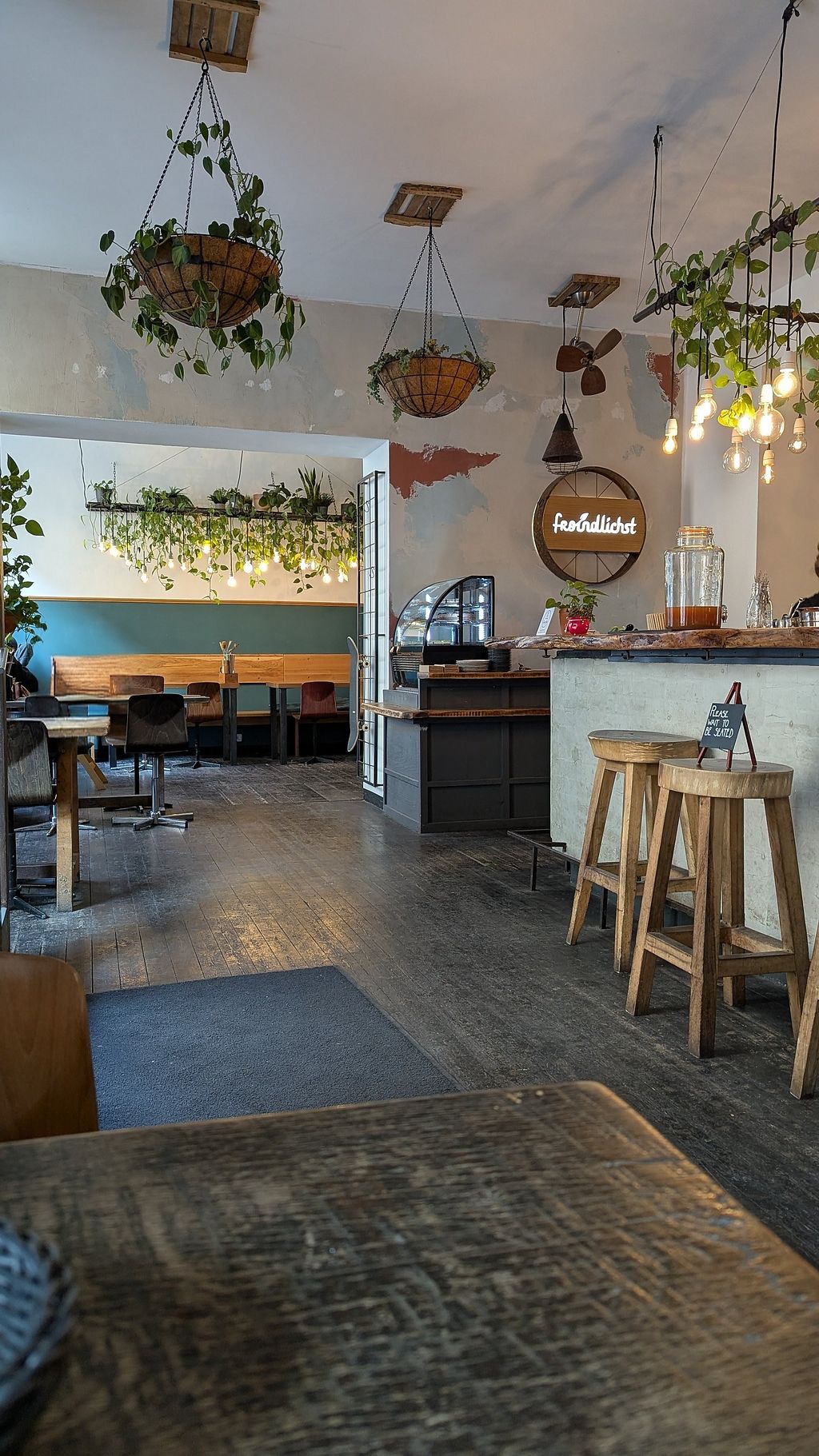 Super schön eingerichtetes veganes Lokal mit ganztägiger Küche. Das Frühstücksbrett bietet von allem etwas mit „Ei“, MacNCheese, Stullen und süßem. Absolute Empfehlung sind außerdem die Pistazienpancakes.