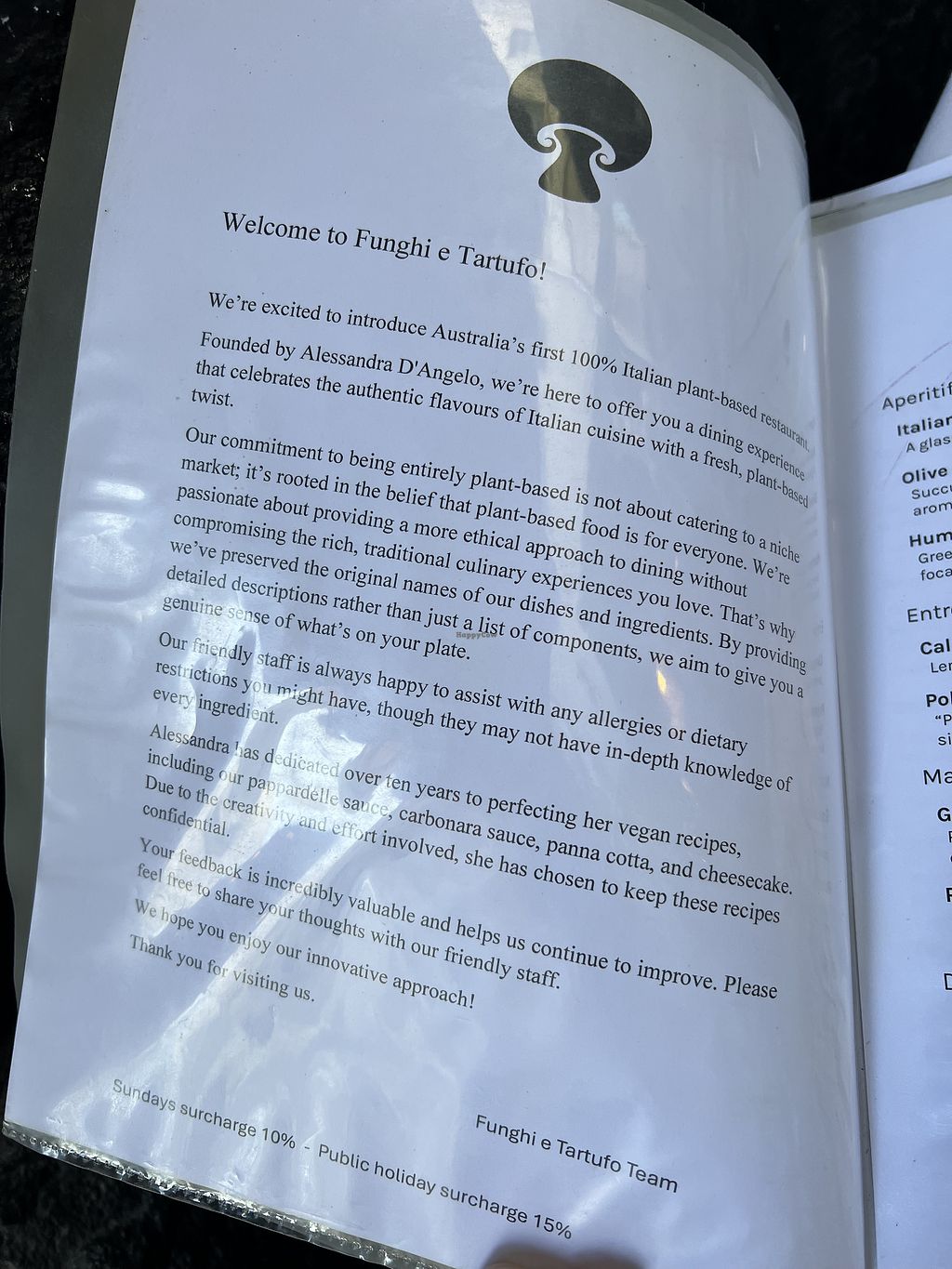 My wife and I had the pleasure of dining here. The food was amazing, the chef has crafted vegan versions of Italian recipes which are comparable to any restaurant’s in flavour, quality and presentation. The service was also great.