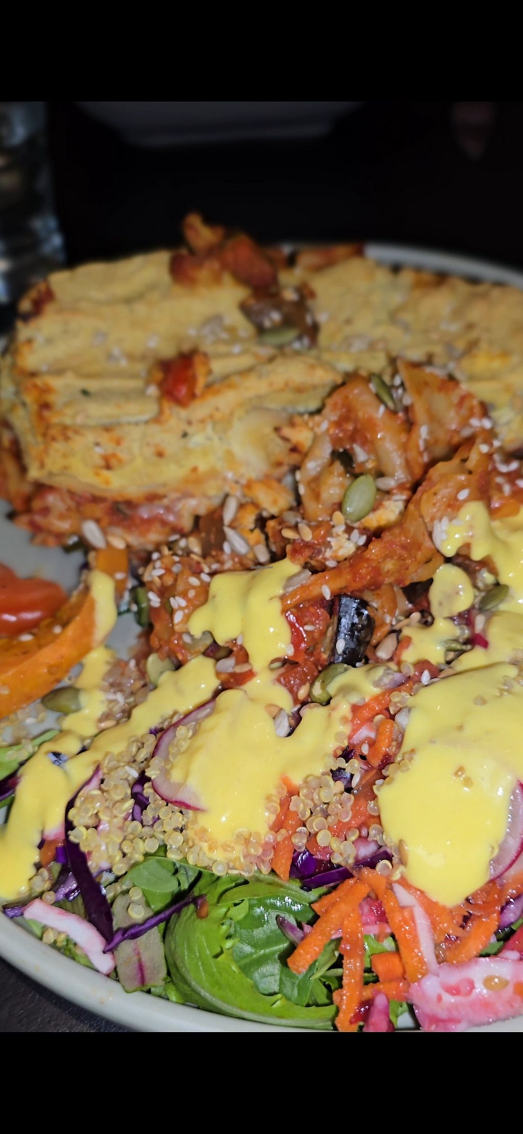 Voor ons de 1e keer bij Funky Jungle. Even in de war omdat buiten “vegetarische keuken” staat, maar alles is (inmiddels?) volledig vegan 🤩 Super vriendelijke en lieve bediening en het eten is gewoon top! Wij hadden vooraf de lookbroodjes & de samosa’s (dat was al een hoofdgerecht op zich) en daarna nog de kapsalon & vegan lasagne. Die konden we gelukkig meenemen, samen met nog een tiramisu. ❤️