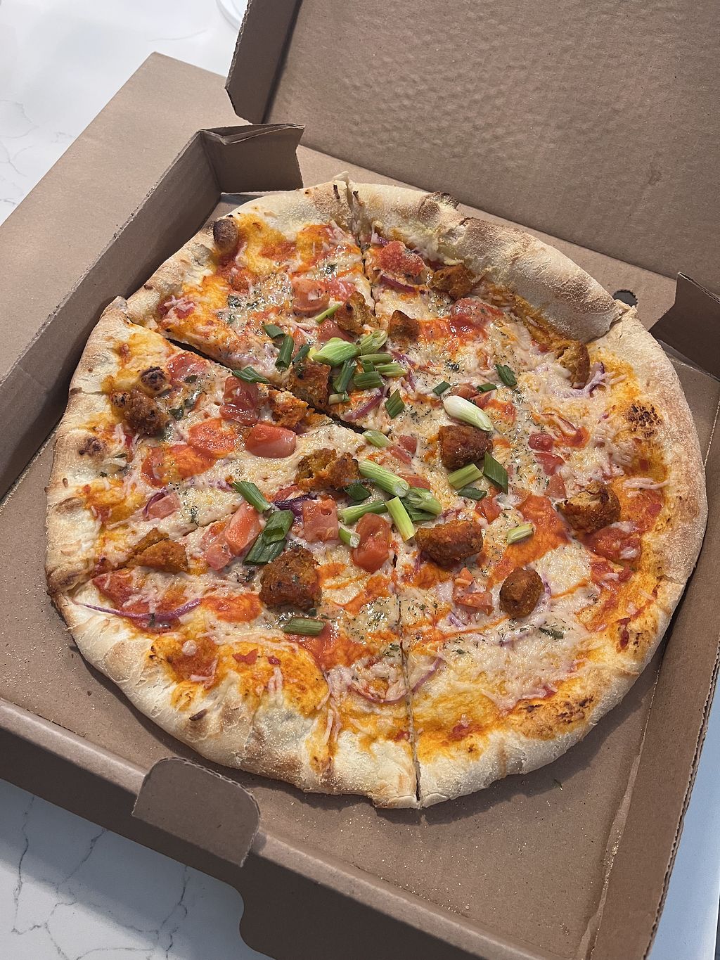 Great vegan pizzas with a bunch of fun choices. I had the buffalo chicken and garlic fingers with vegan donair sauce. The garlic fingers were as close to non-vegan garlic fingers as possible and even my super picky 4y/o nephew loved them! The staff were super friendly and helpful and clarified my order at pick up (I had ordered 1 non vegan donair sauce too). I found the donair sauce a bit coconut-y but it’s a pretty good match. Can’t wait to return to try the other pizzas!