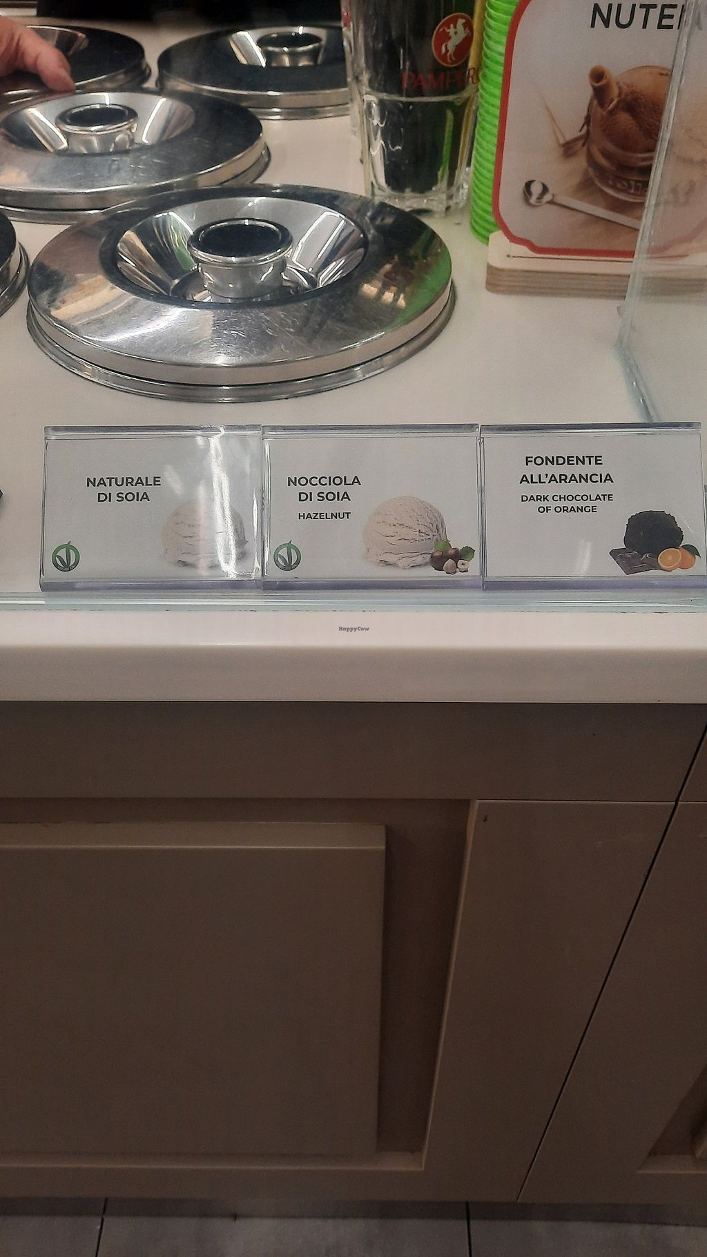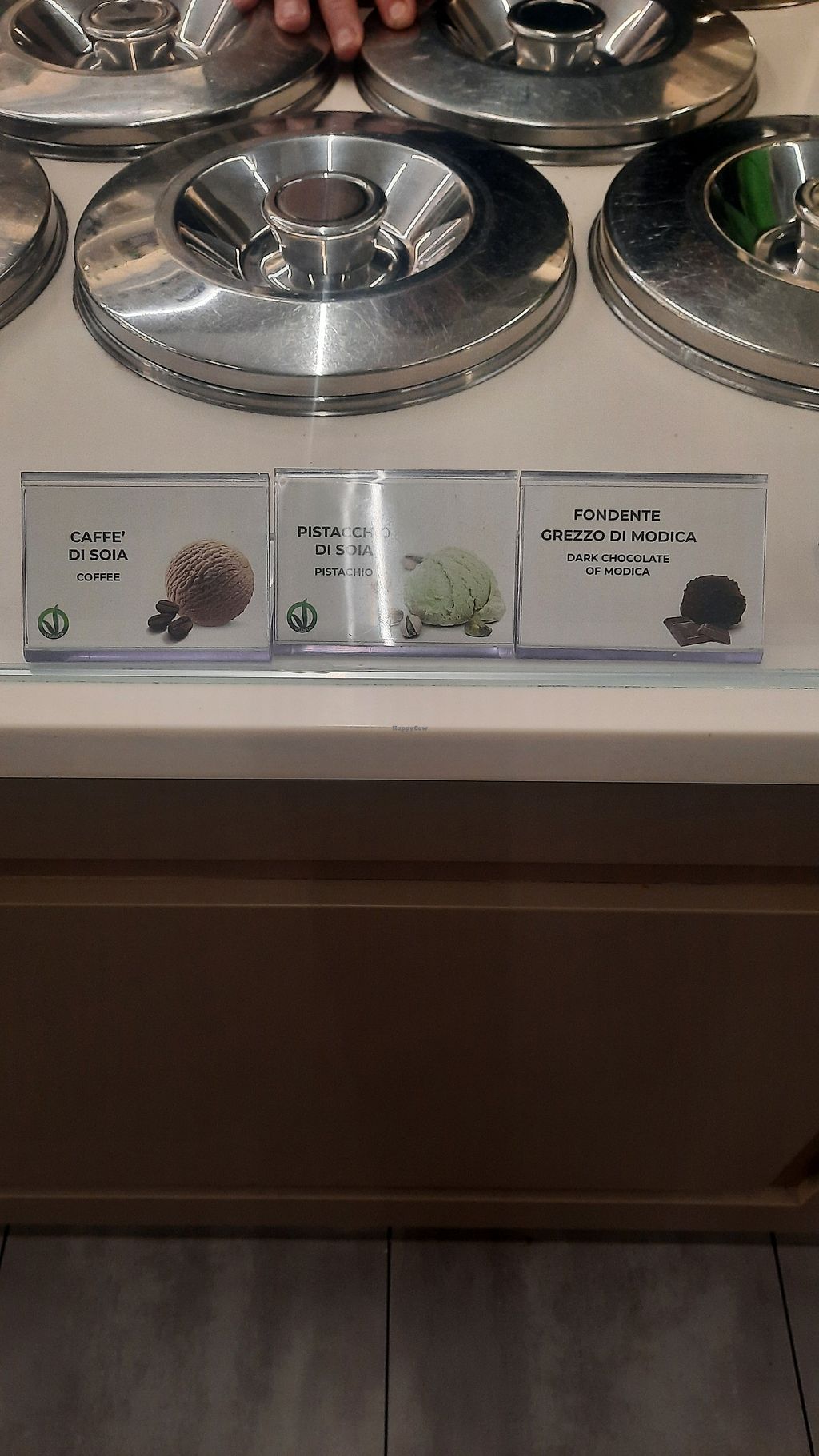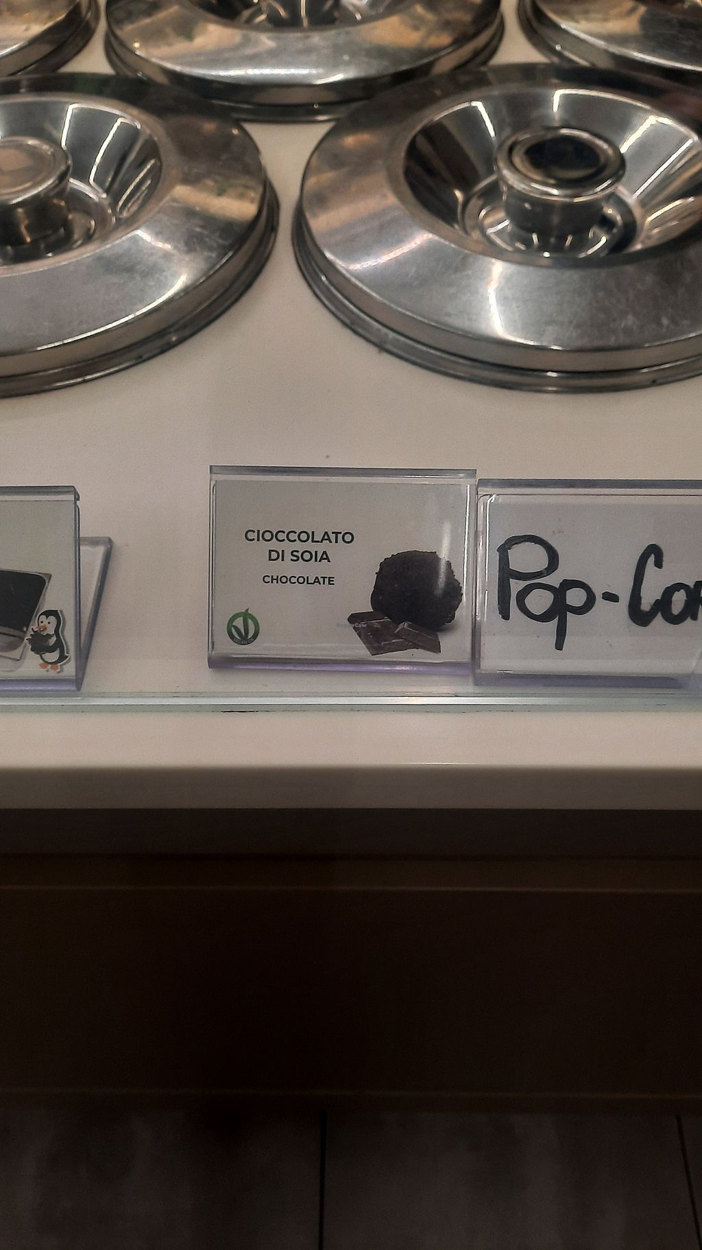 Non mi aspettavo di trovare una buona varietà di gusti classici vegani quali: nocciola pistacchio e cioccolata oltre ai classici alla frutta, per loro natura vegani. Hanno anche il cono vegano.