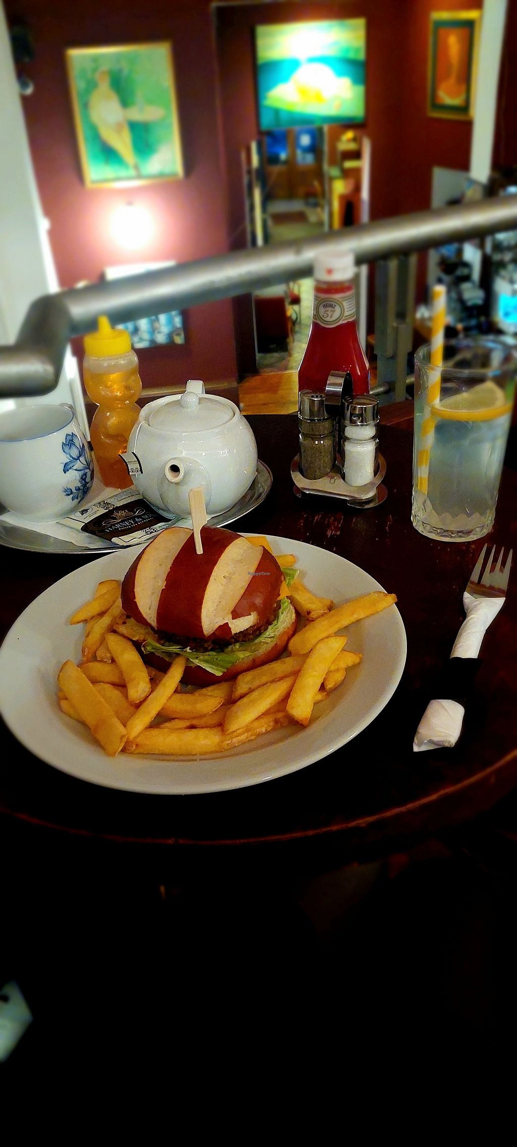 I mainly came for the english bookstore and atmosphere, but the Veggie Burger (which can be served with a vegan bun and cheese) was absolutely delicious paired with some fries and the homemade Ice Tea.