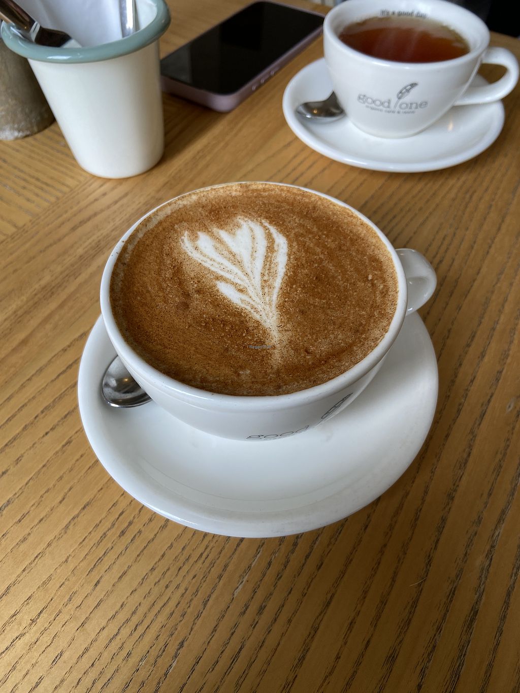 Hatte Porridge und nen Cappuchino. Beides war lecker, jedoch auch extrem süß. Die Hafermilch hat viel eigene Süße, auf dem Porridge war Nussnoutgatcreme UND ein Honigersatz. Eins von beidem wäre auch ok.